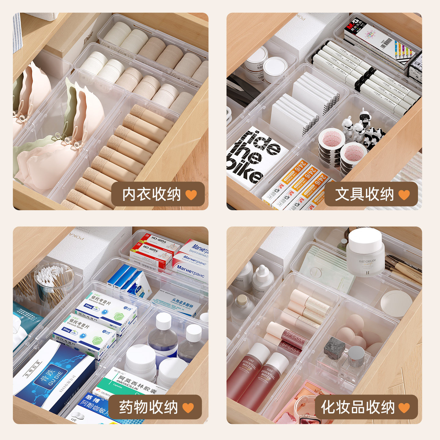 抽屉收纳盒长方形塑料盒子厨房桌上化妆品零食杂物袜子长条整理盒