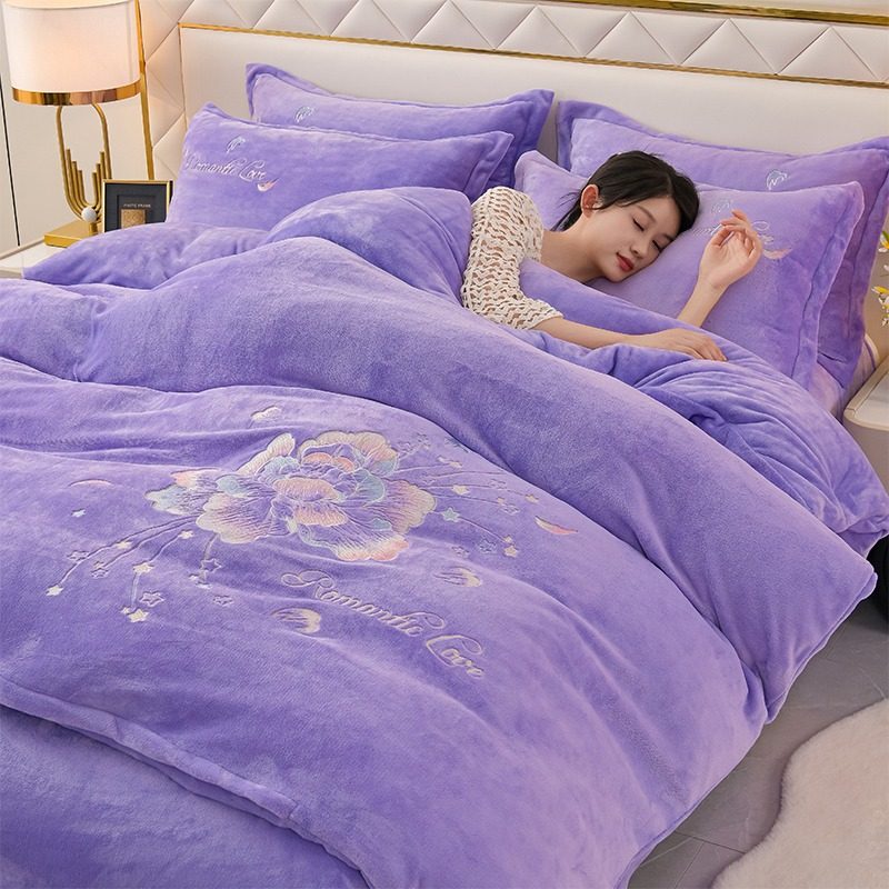 【顺丰快递】慕斯牛奶绒四件套暖绒套件床单床笠秋冬保暖牛奶绒