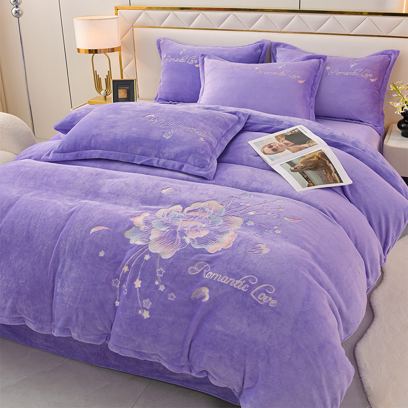 A类牛奶绒四件套珊瑚绒毛加绒法兰绒面床单被套床笠冬季床上用品4