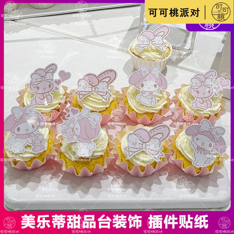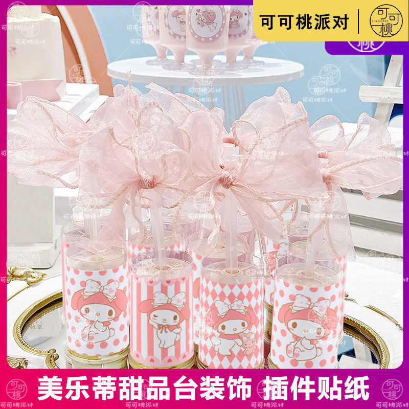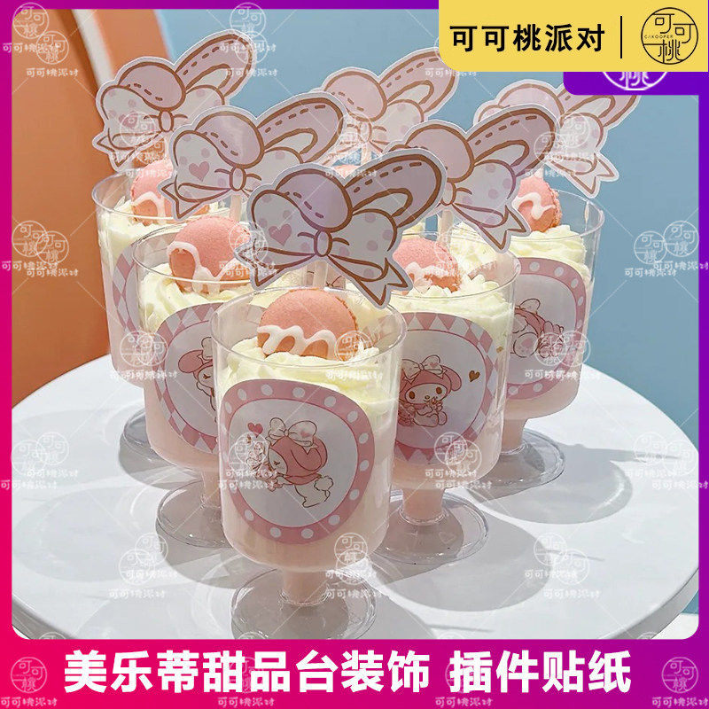 粉色美乐蒂慕斯杯插件插牌云朵贴纸甜品台装女宝宝周岁生日宴布置