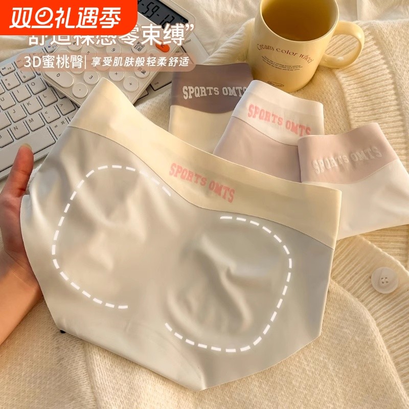 冰丝无痕内裤女士新款纯棉全棉抗菌裆速干面膜三角短裤中腰蜜桃