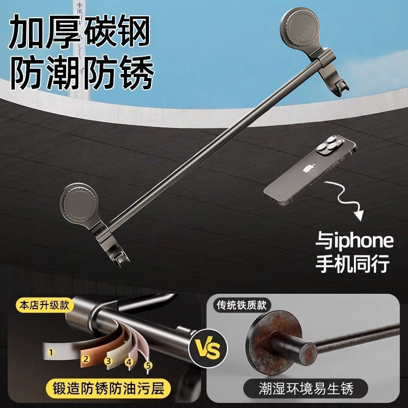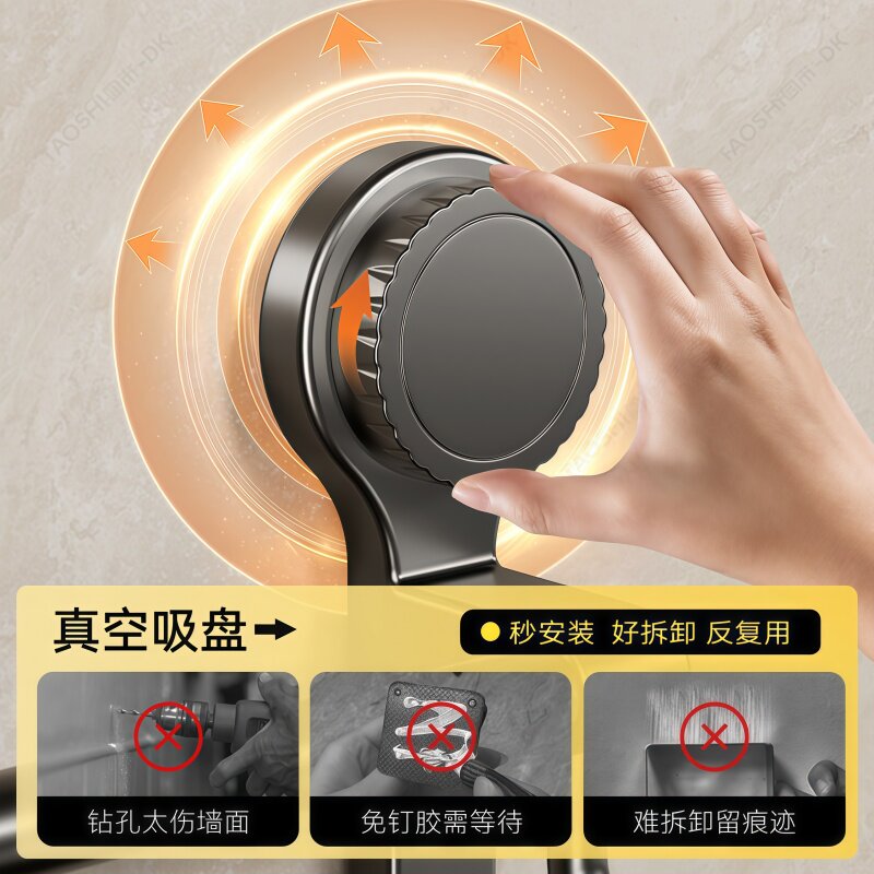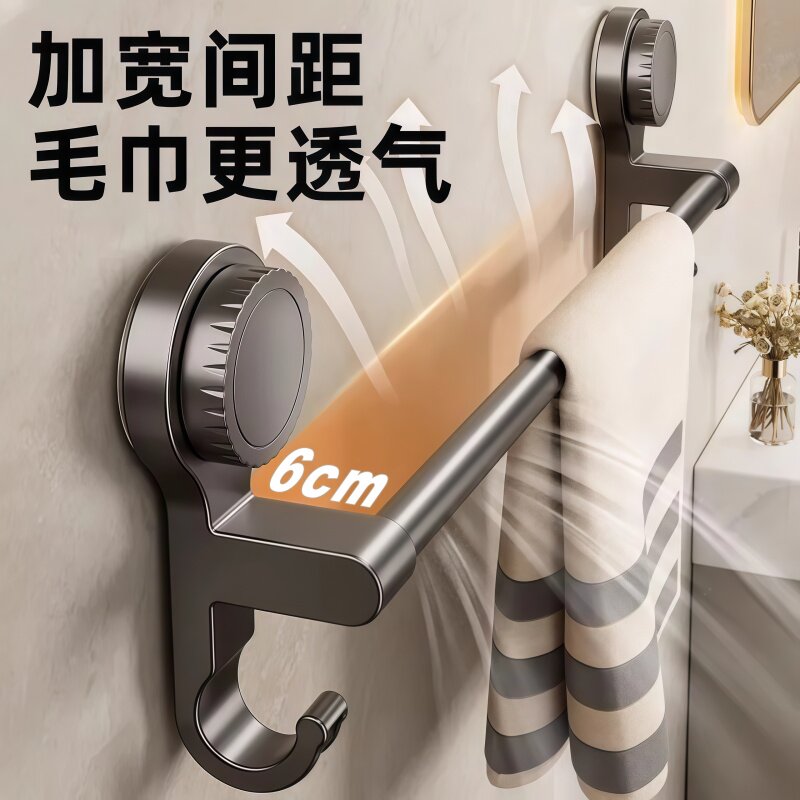 吸盘式毛巾架卫生间免打孔墙上毛巾架子浴室置物架厕所晾毛巾挂杆