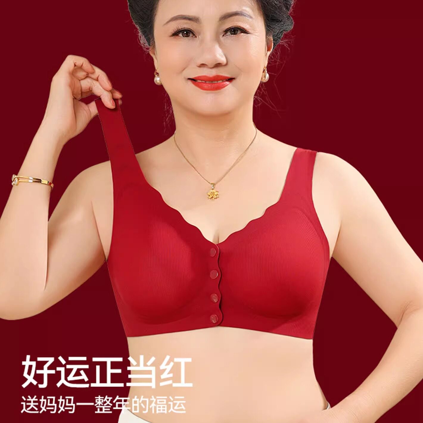 妈妈本命年内衣套装女红色中老年妇女前扣式文胸聚拢收副乳防下垂
