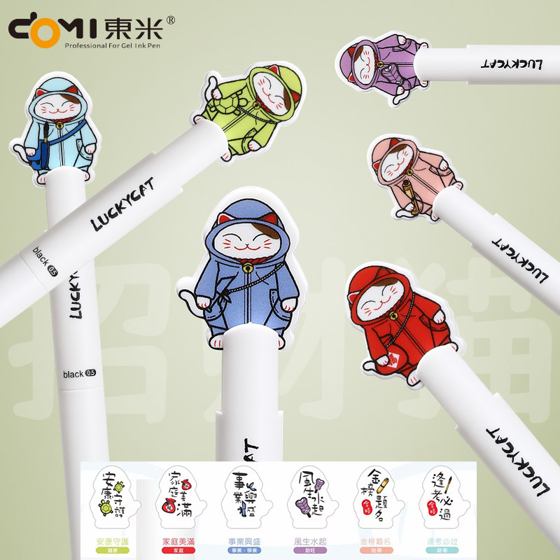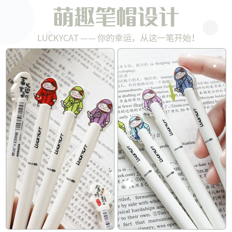 东米2409招财猫联名款网红中性笔CS双珠笔头速干大容量不断墨考试必备刷题笔ins风高颜值国潮文具学生手账笔