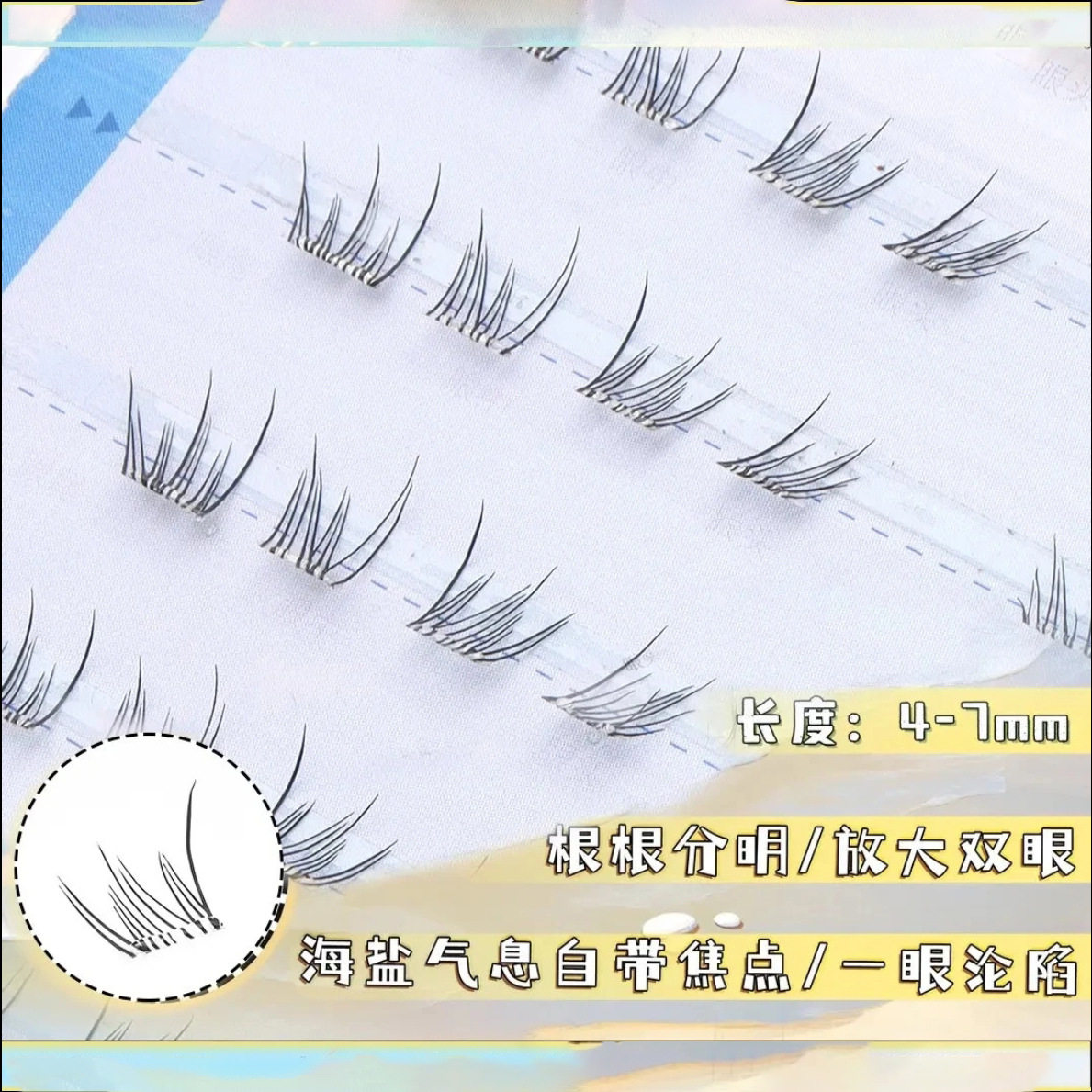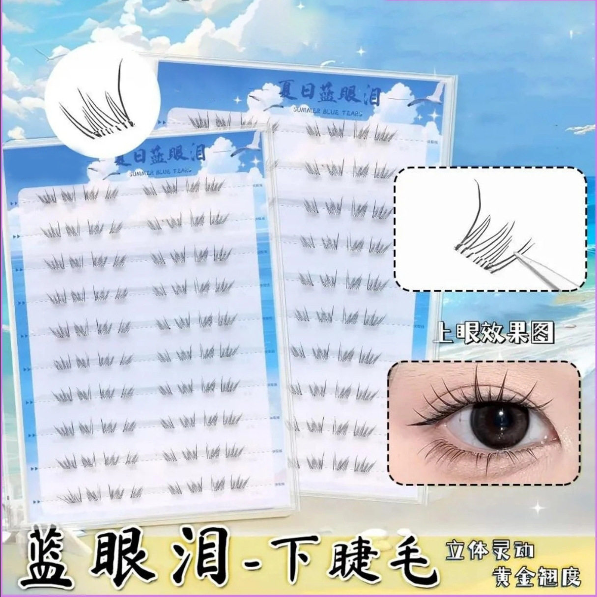 新品首发夏日蓝眼泪免胶下睫毛梦幻海洋清新单簇卷翘分段式假睫毛