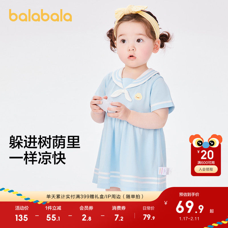 巴拉巴拉宝宝连衣裙婴儿裙子儿童公主裙女童夏装海军风甜美文艺萌