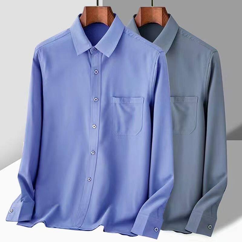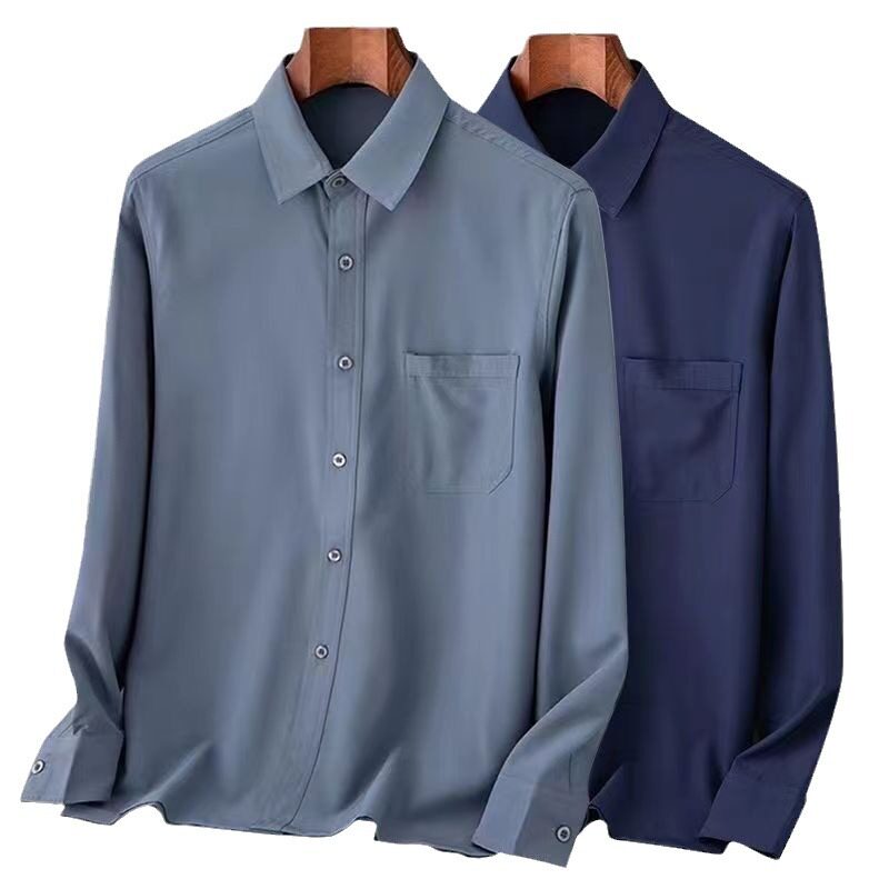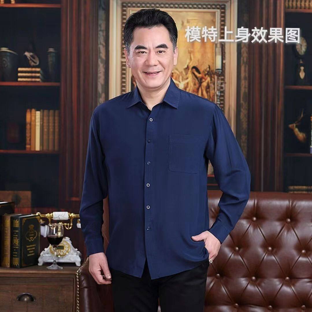 夏装中年男士长袖衬衫冰丝薄款爸爸装纯色宽松爷爷衬衣中老年人