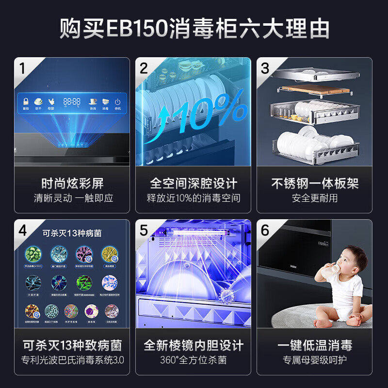 海尔150L消毒柜家用嵌入式碗筷烘干一体机消毒碗柜医用杀菌EB150