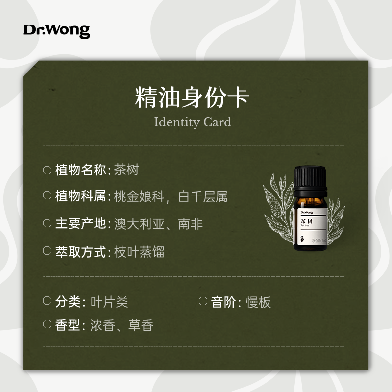 Dr.Wong茶树单方精油清冽安心洁净澳洲产天然植物草本香精油香薰
