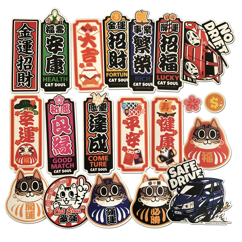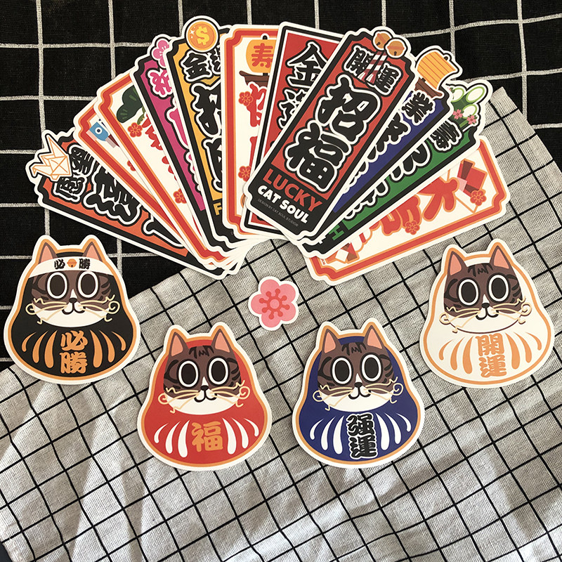20张招财开运祈福猫咪日式卡通行李箱贴纸防水贴画笔记本滑板贴纸