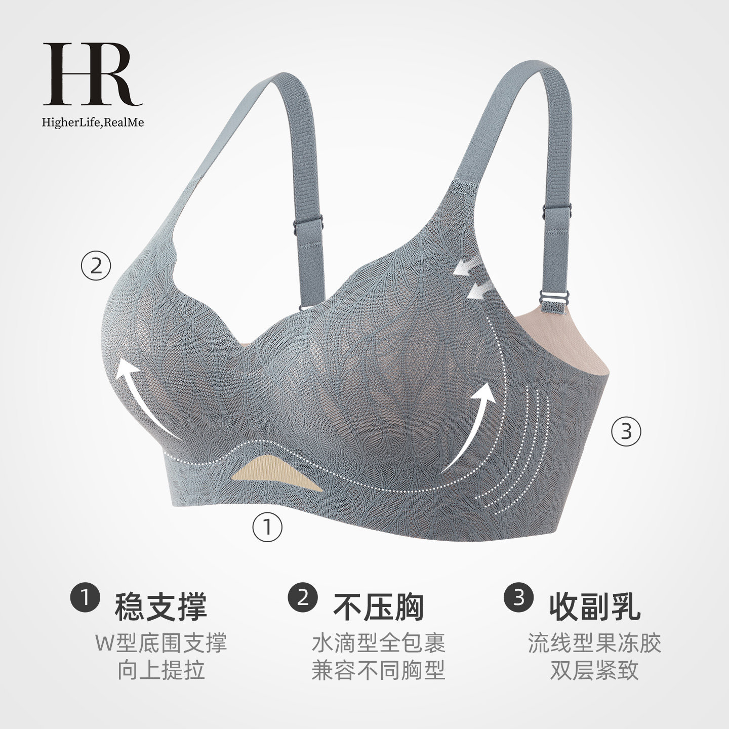 HR赫莲娜「小波浪」法式蕾丝小胸聚拢内衣女收副乳防下垂文胸