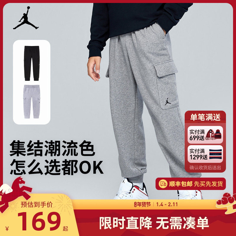 Jordan儿童装男童工装长裤大童运动裤子休闲裤百搭卫裤JD2212101