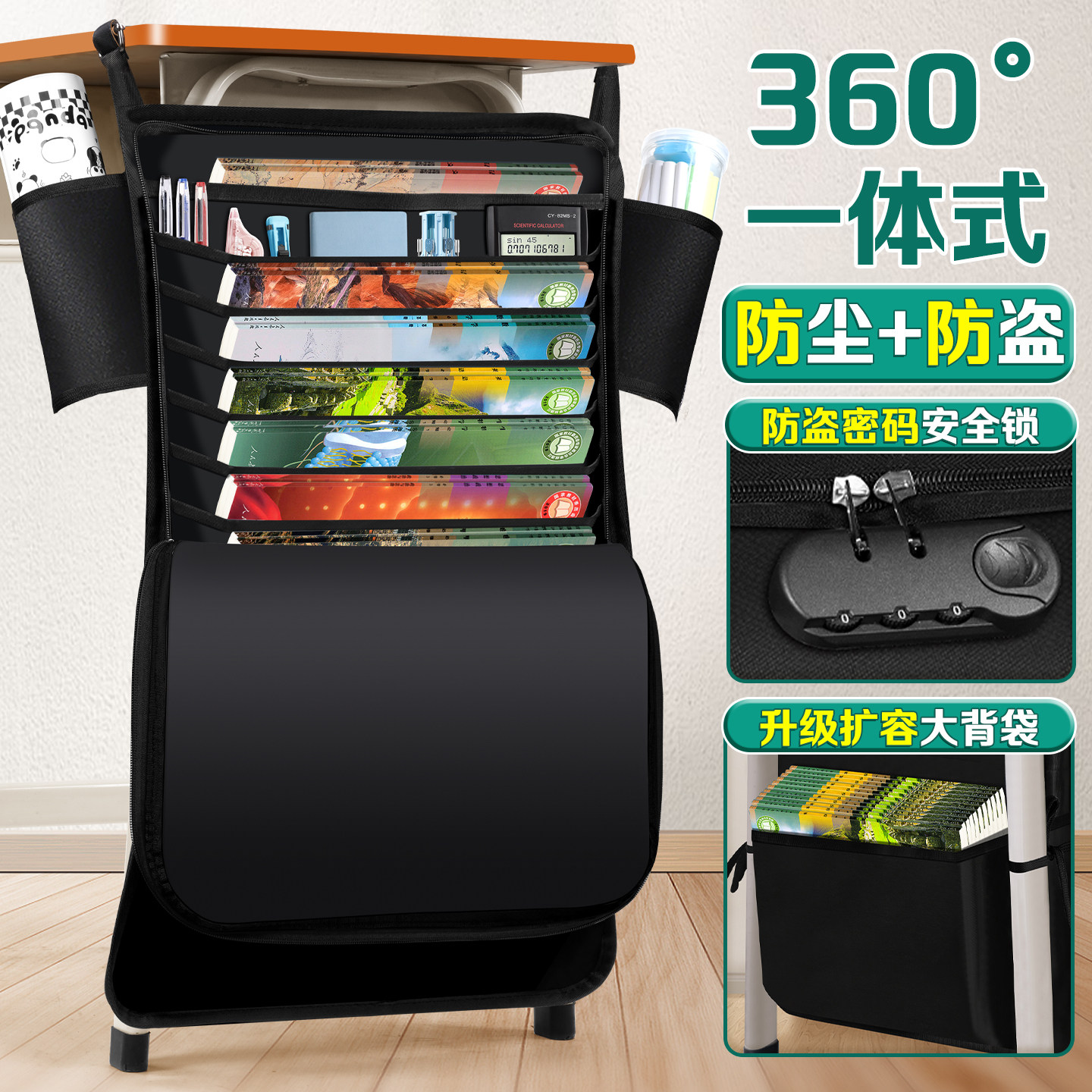 密码锁防尘挂书袋大容量高中生课桌收纳初中生学生挂桌书桌侧书立挂袋教室书本桌面置物架多功能桌边带放书