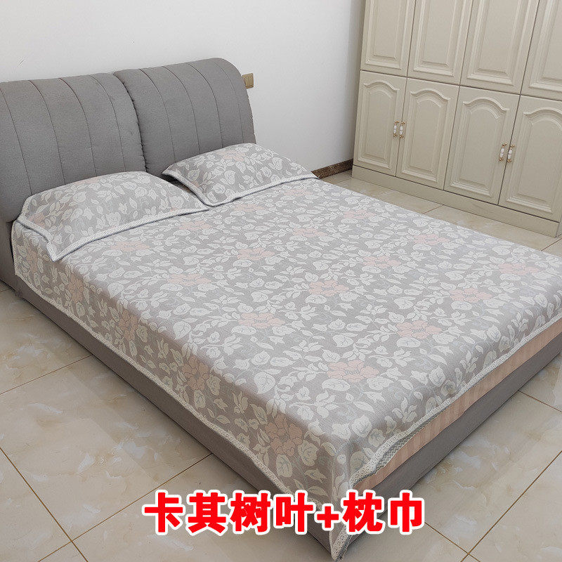 2u8k纯亚麻双层提花干爽加厚亚麻凉席折叠式纯麻夏季席子套件