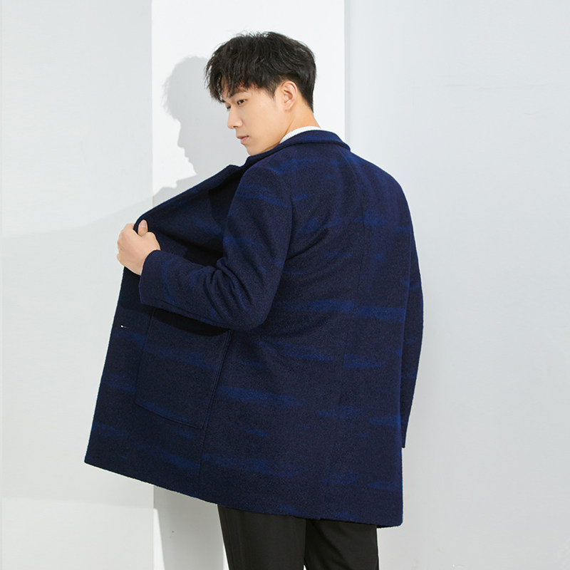 大牌一线冬季保暖毛呢大衣中长款韩版西装领高级感上衣外套男