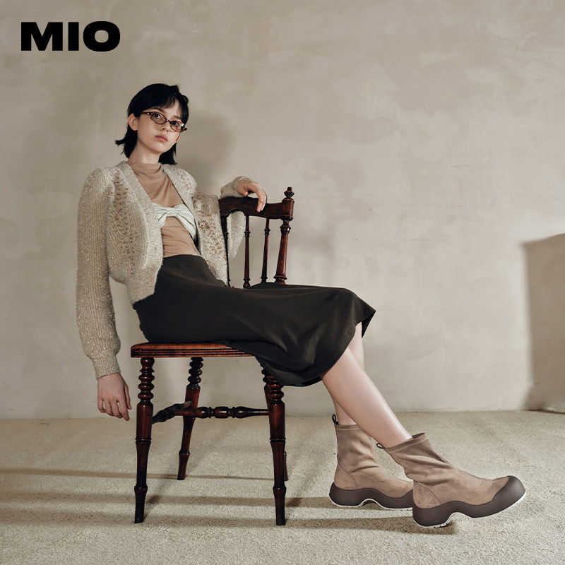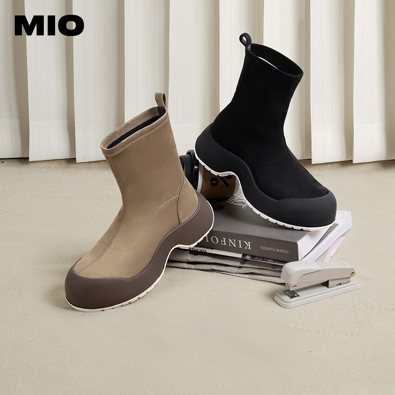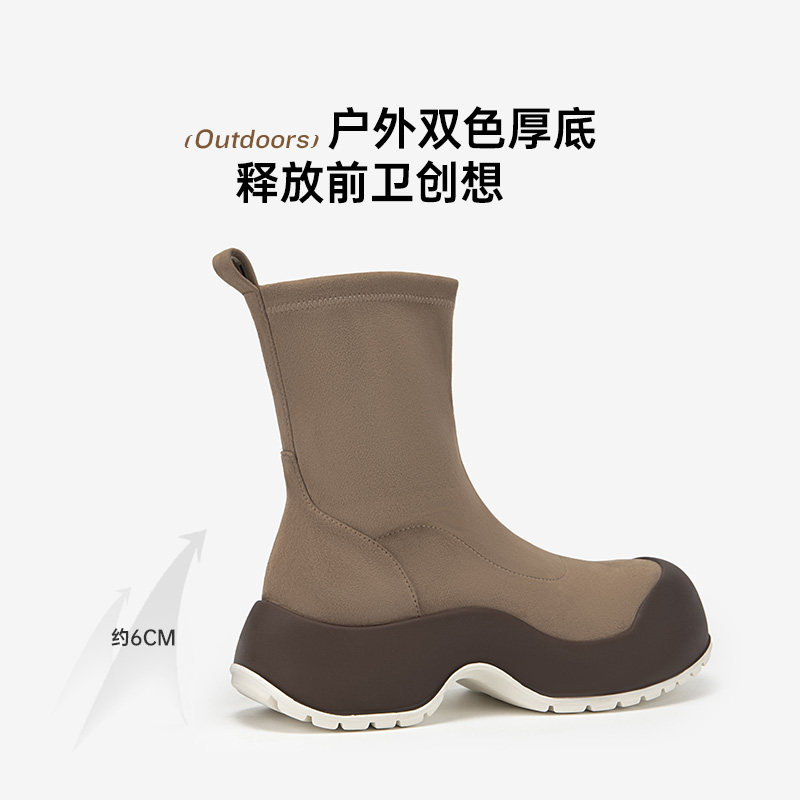 MIO米奥冬季短靴高跟弹力靴拼接厚底酷飒袜靴潮流运动瘦瘦靴女