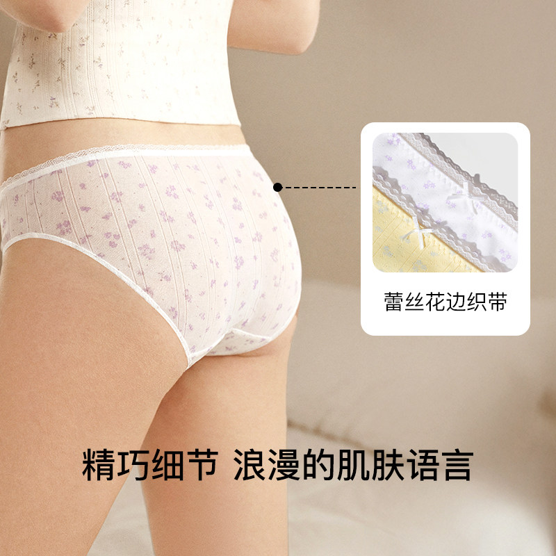 ubras内裤女棉感镂空提花透气新款印花纯棉抗菌裆中低腰三角裤