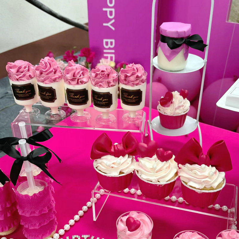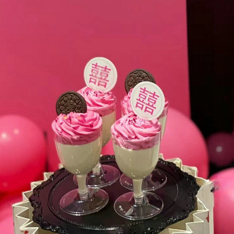 玫粉色甜品台装饰订婚喜字插件玫红推推乐贴纸慕斯杯布丁瓶封口纸
