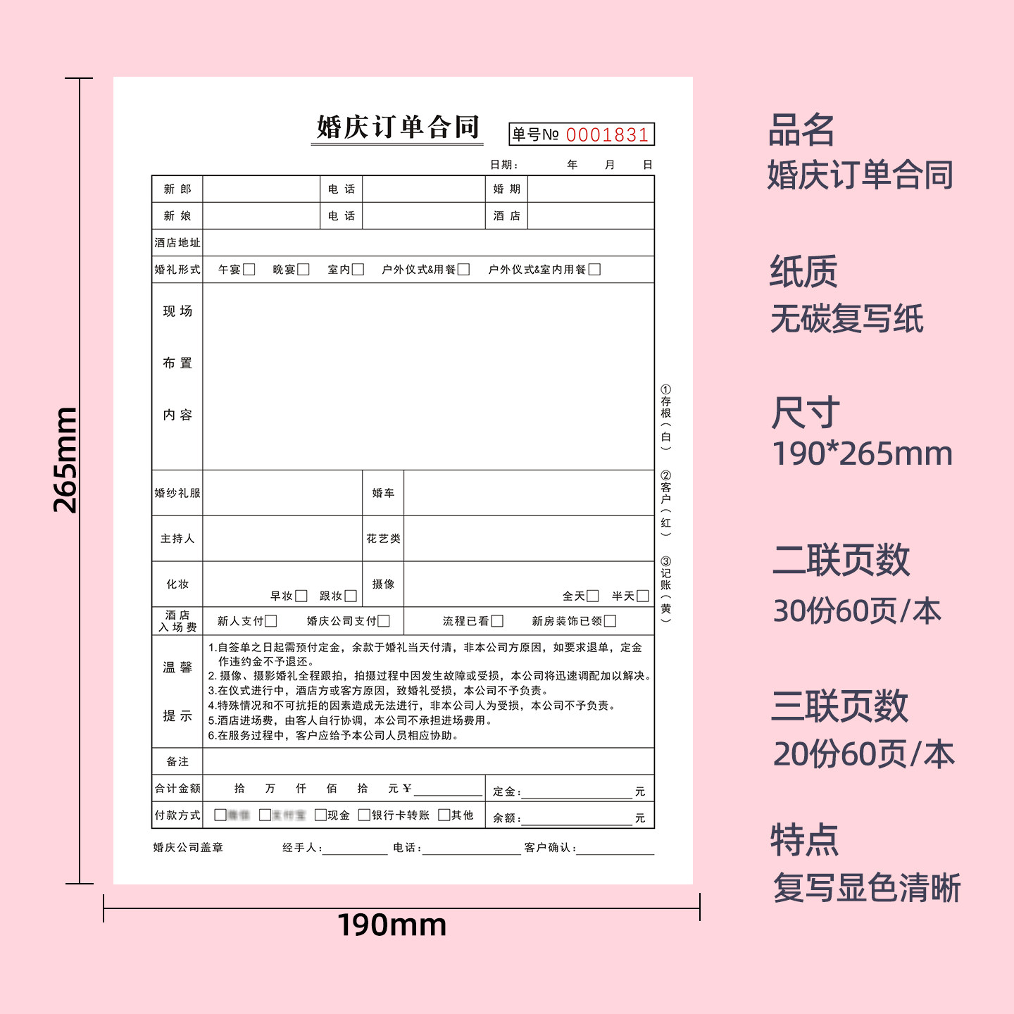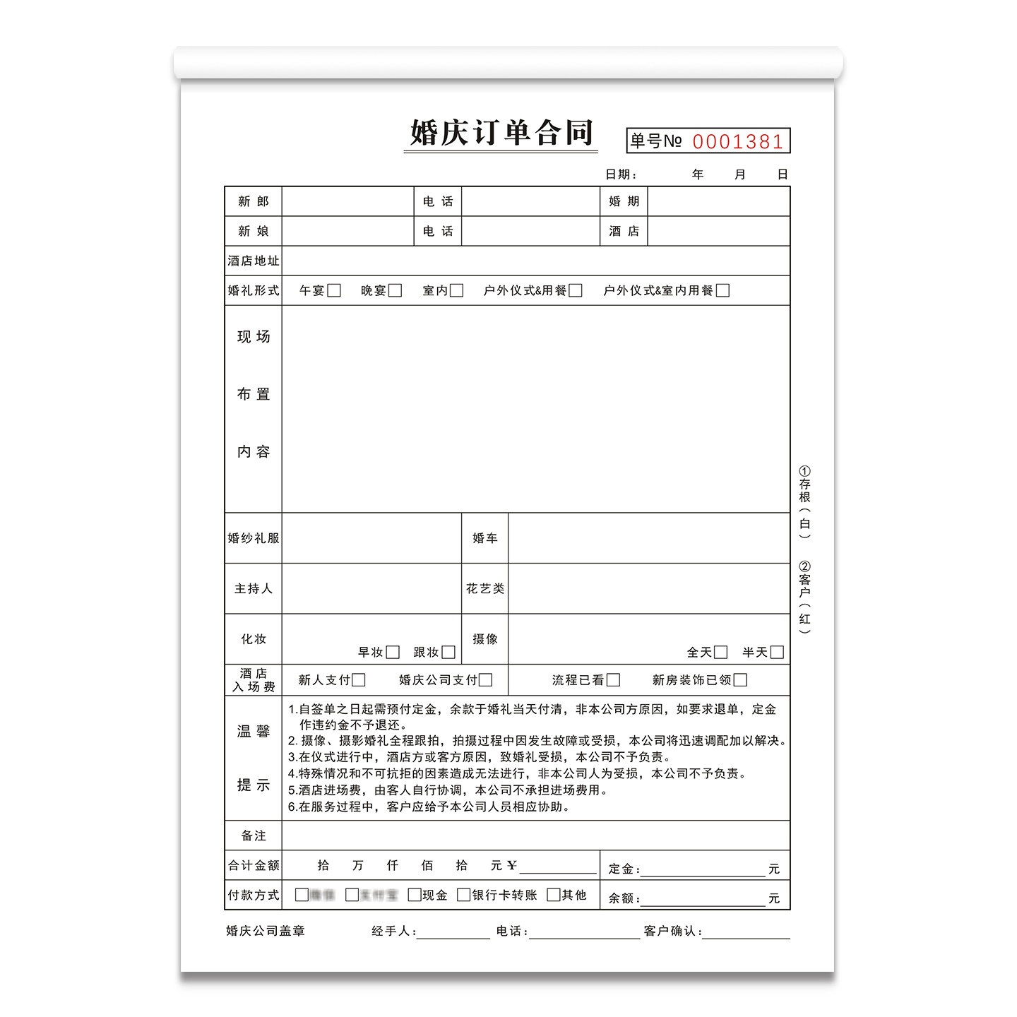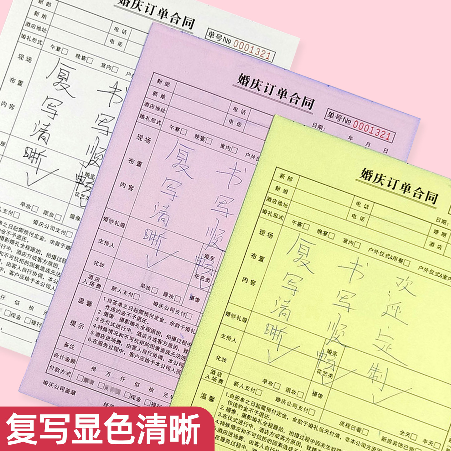 婚庆订单合同室内户外婚礼布置摄像服务单二三联婚庆收据策划协议
