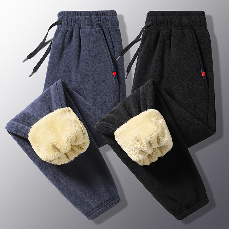 双面加绒加厚男女士休闲裤子束脚奥粒绒运动保暖冬季口袋拉链棉裤