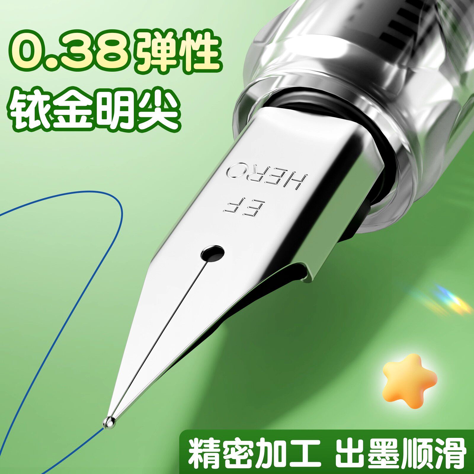 2024新品英雄牌钢笔热敏可擦钢笔小学生专用三年级练字橡皮擦小暗尖0.38可擦魔力擦晶蓝色墨蓝儿童男孩女孩