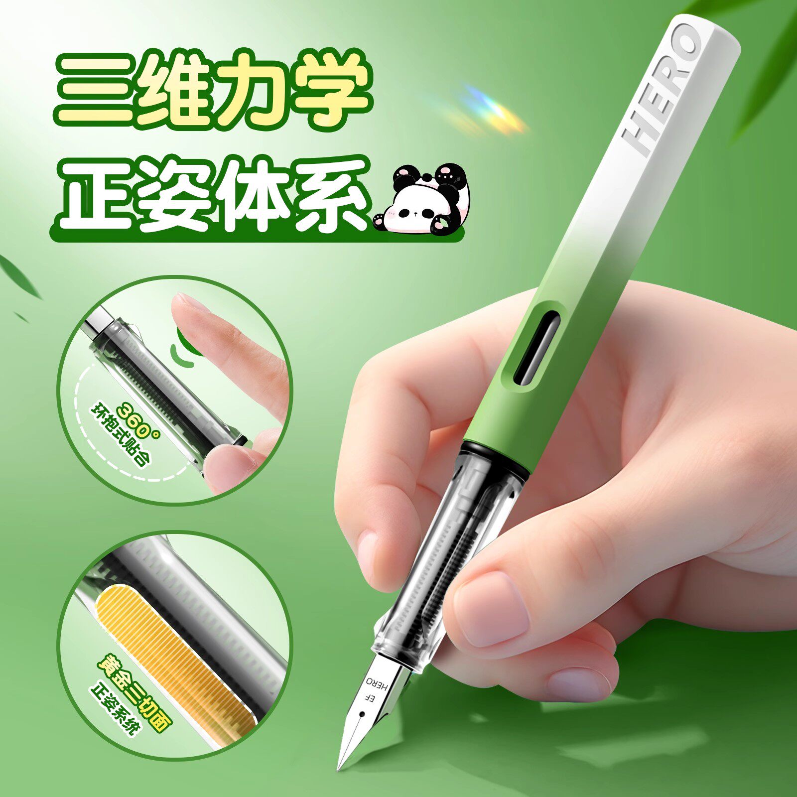 英雄牌钢笔小学生三年级专用正姿练字高颜值可替换墨囊四年级男女孩儿童初学者中学生可爱卡通钢笔官方旗舰