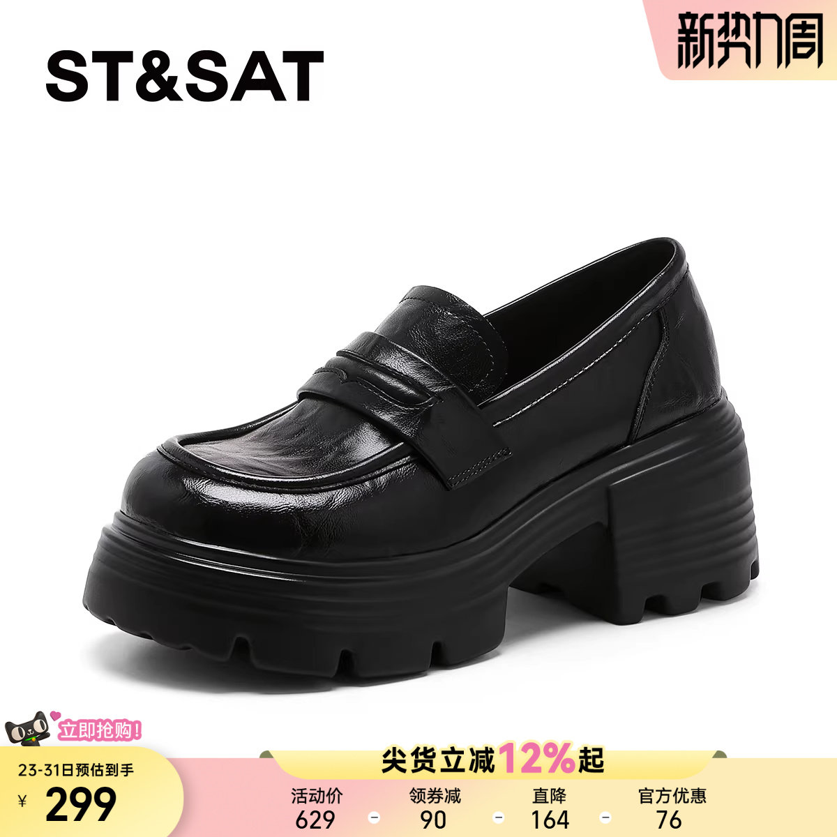 星期六厚底乐福鞋女款2025新款软底不累脚女鞋英伦黑色百搭小皮鞋