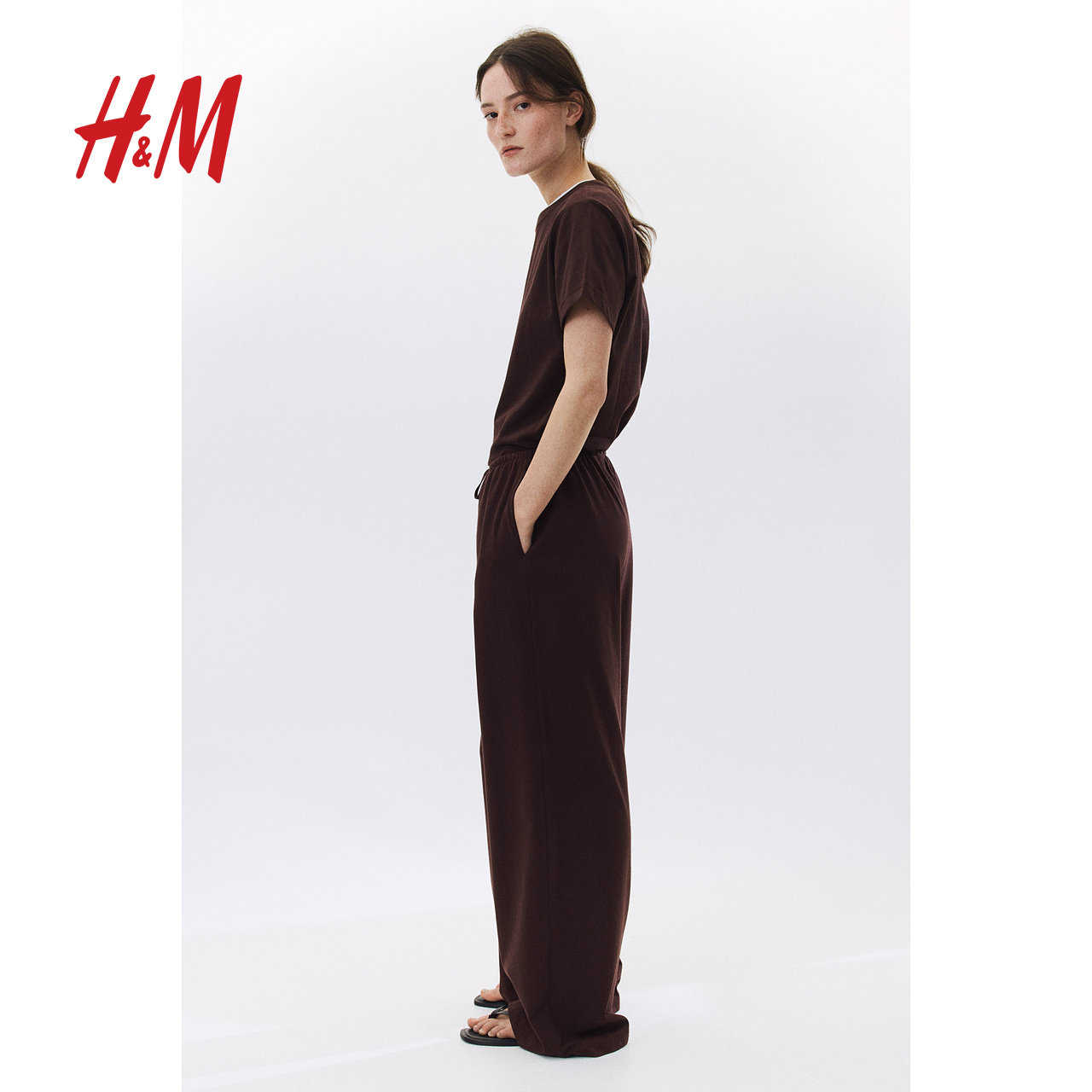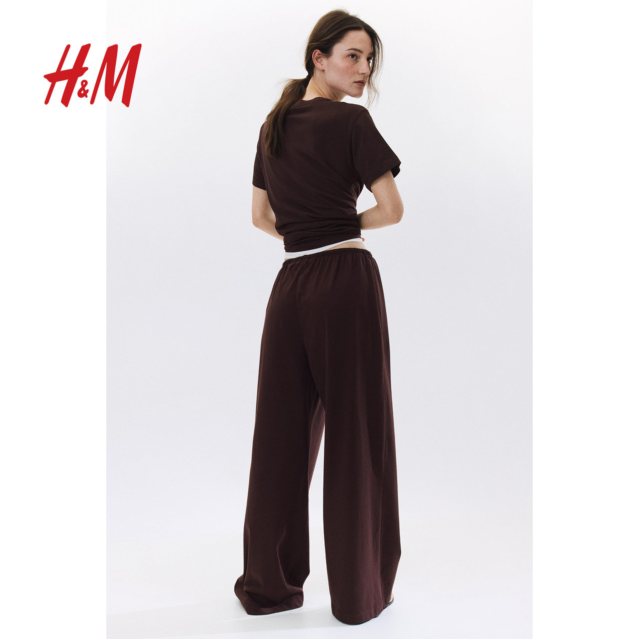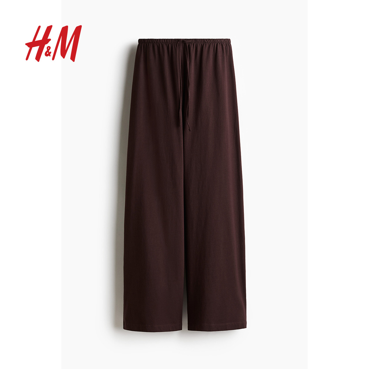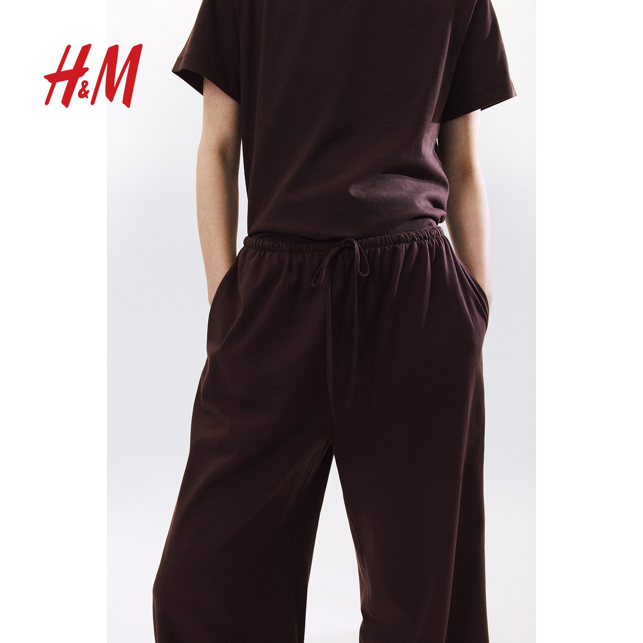 HM女装休闲裤2025冬季新款棉质抽绳设计直筒宽松休闲长裤1270859