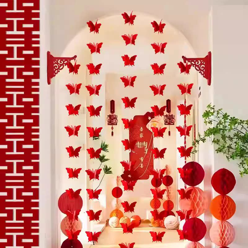 结婚窗帘装饰拉花挂饰婚礼婚房新房布置男方女方卧室客厅长条喜字
