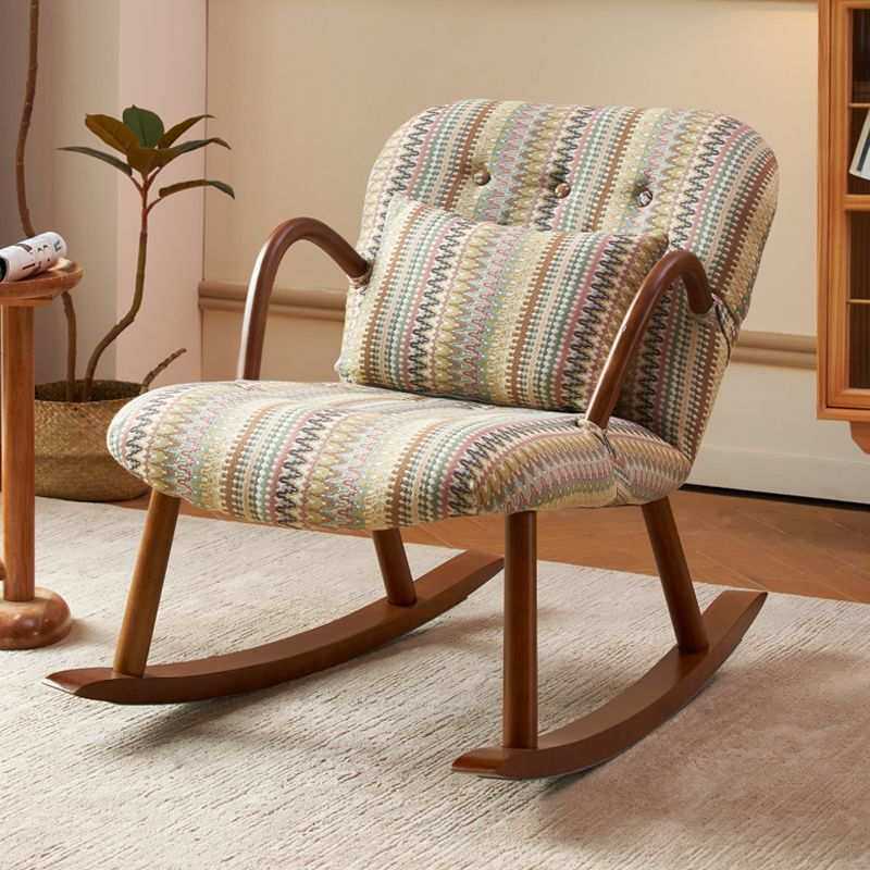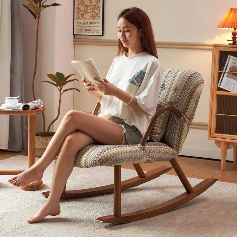 日式实木休闲桌椅组合阳台客厅小户型家用美式复古花纹懒人沙发椅