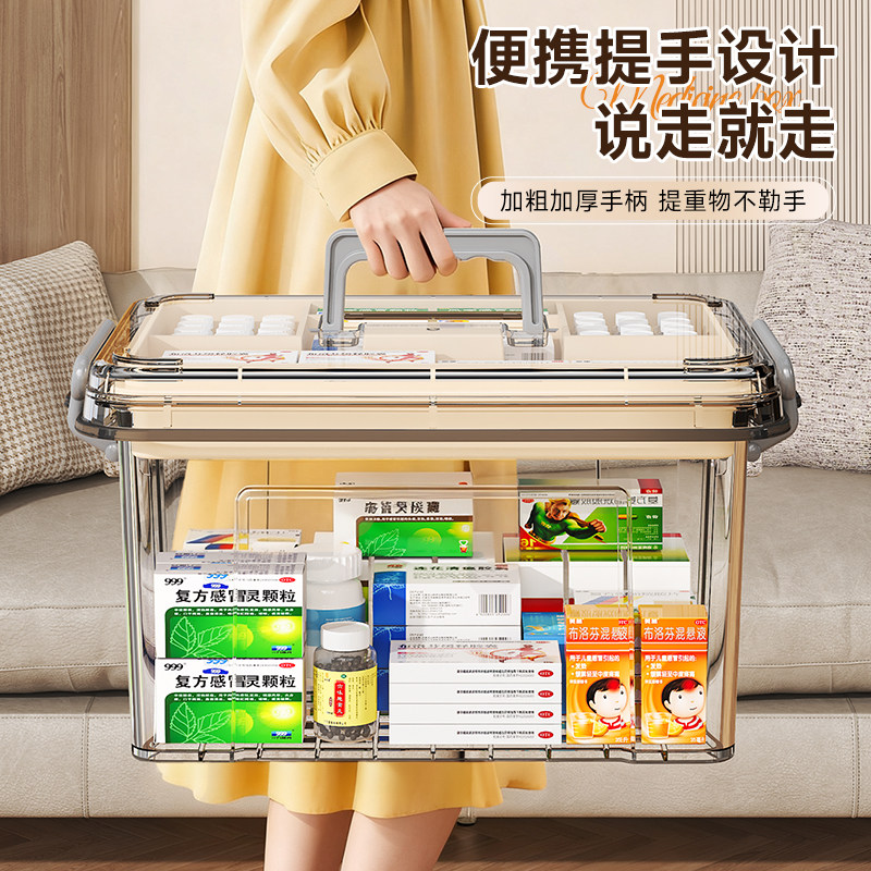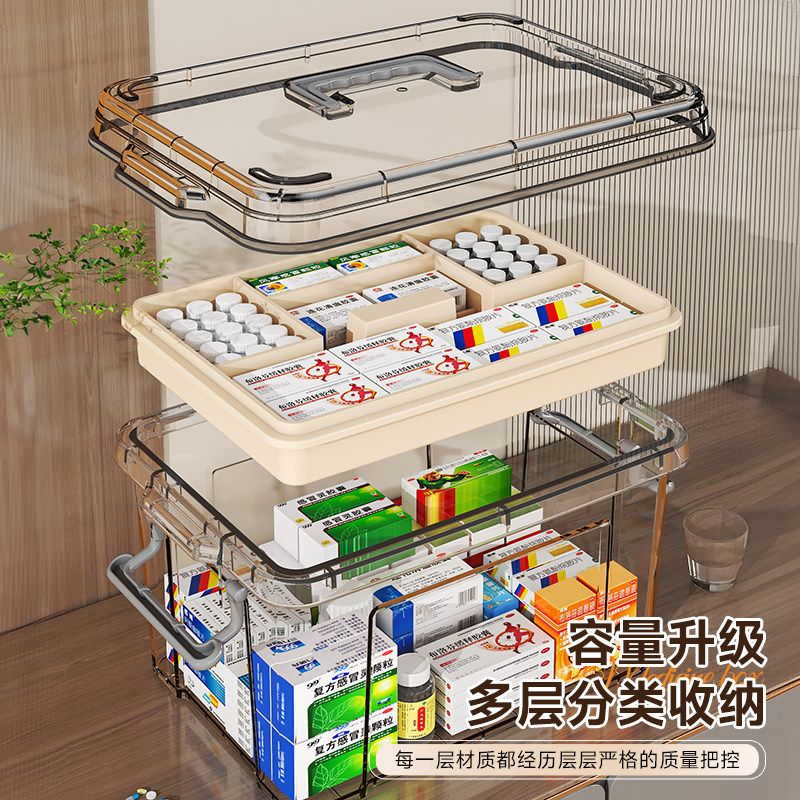 多层药箱家庭装家用医药箱大容量药物医疗急救药盒收纳盒透明特大
