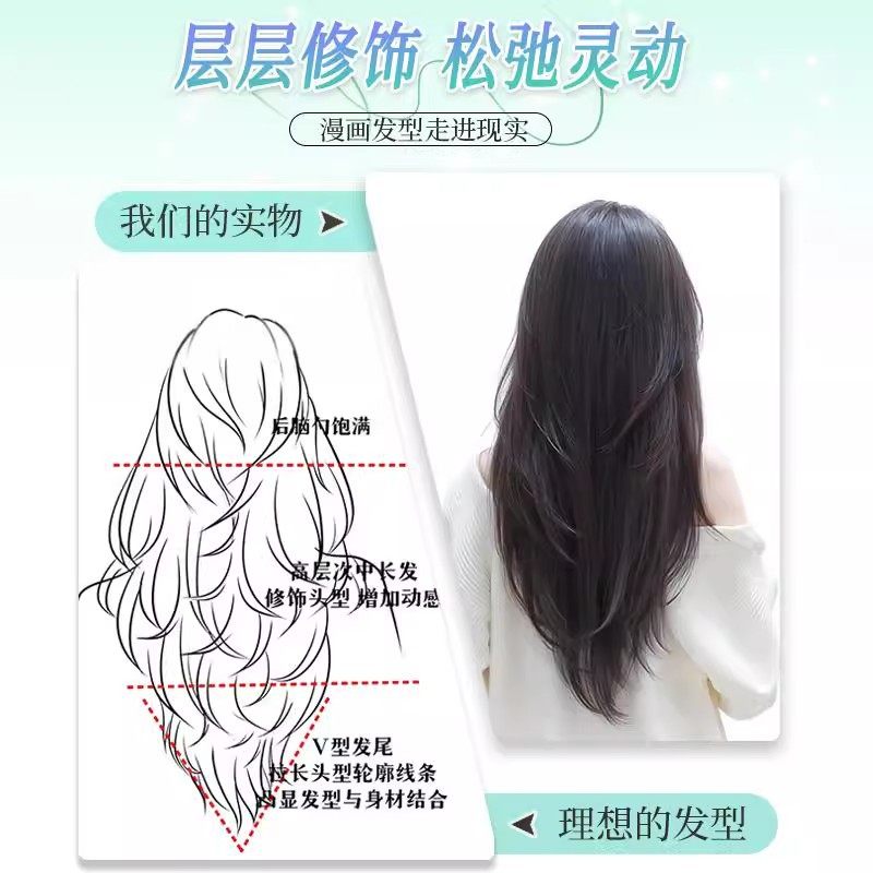 假发片长发一片式高层次v型精修仿真发增发量蓬松轻薄无痕接发片