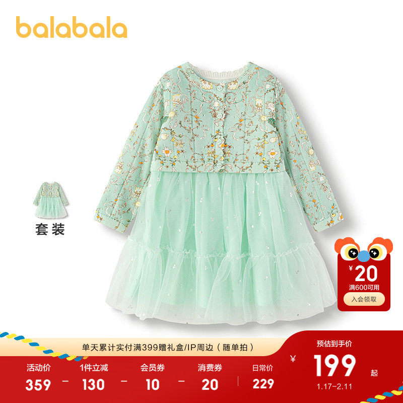 巴拉巴拉balaOne童装女公主裙2025秋冬新款儿童连衣裙针织网纱裙