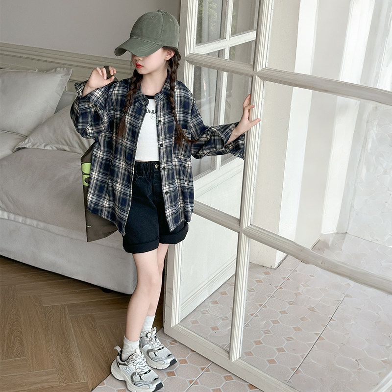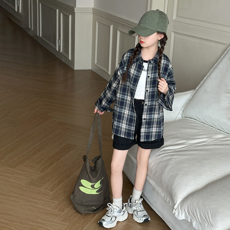女童衬衫格子长袖2025秋季新款中大童洋气时髦薄款衬衣外套上衣潮