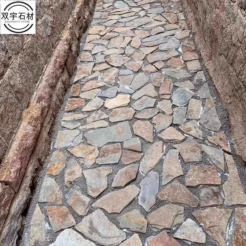 厂家直销锈石碎拼乱型石不规则青石板别墅园林天然仿古地砖青石