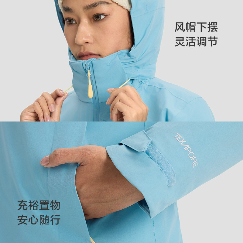 【月光蓝】骆驼户外冲锋衣三合一女防水滑雪服冬季旅游蓝色外套男