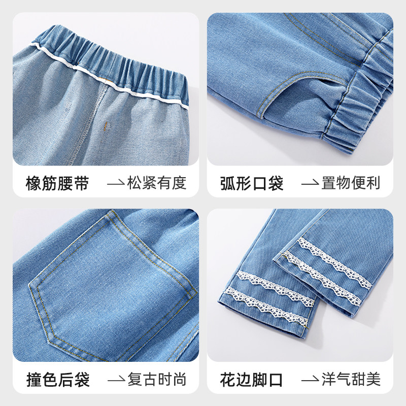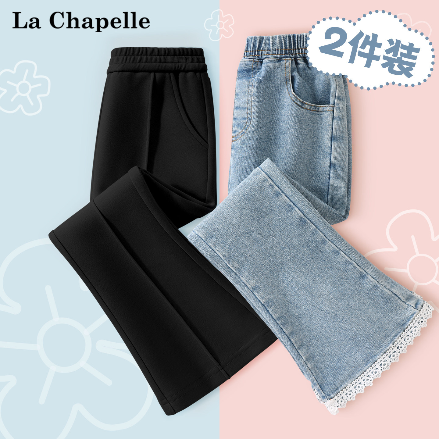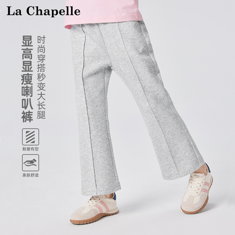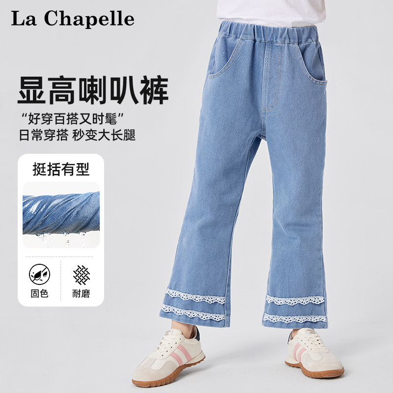 拉夏贝尔女童喇叭裤春秋款儿童休闲裤子2026新款中大童微喇牛仔裤