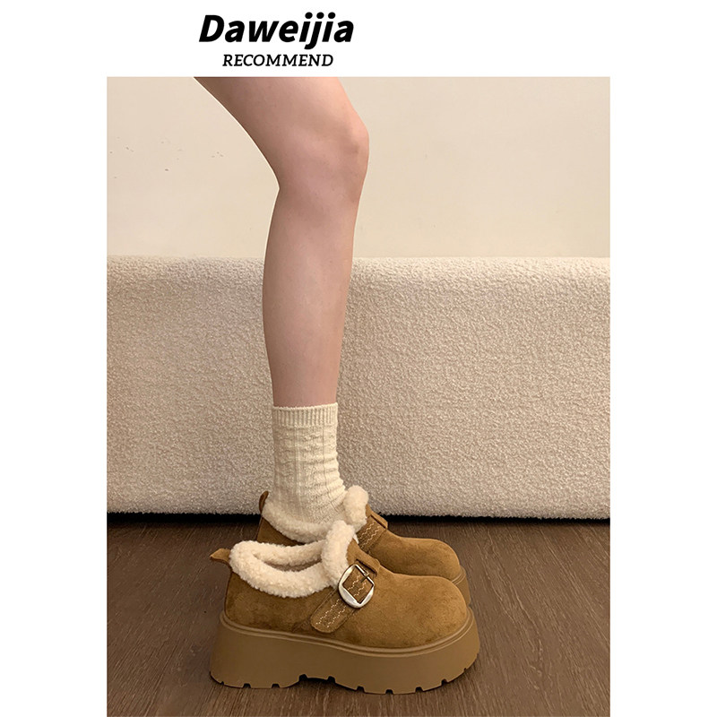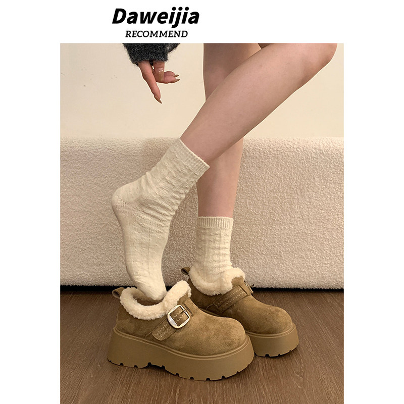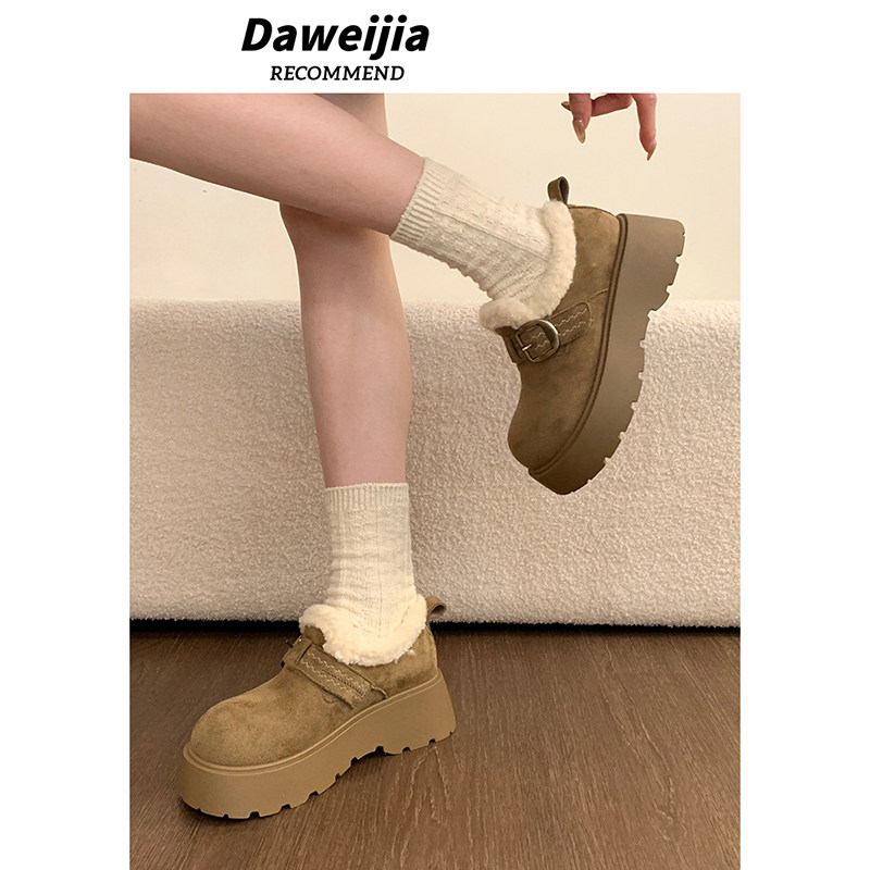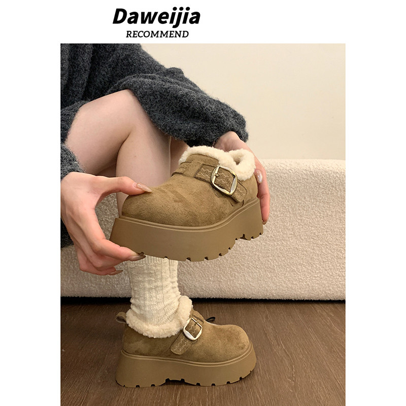 厚底增高加绒豆豆勃肯鞋女2025冬季新款毛毛棉鞋子保暖雪地靴防水