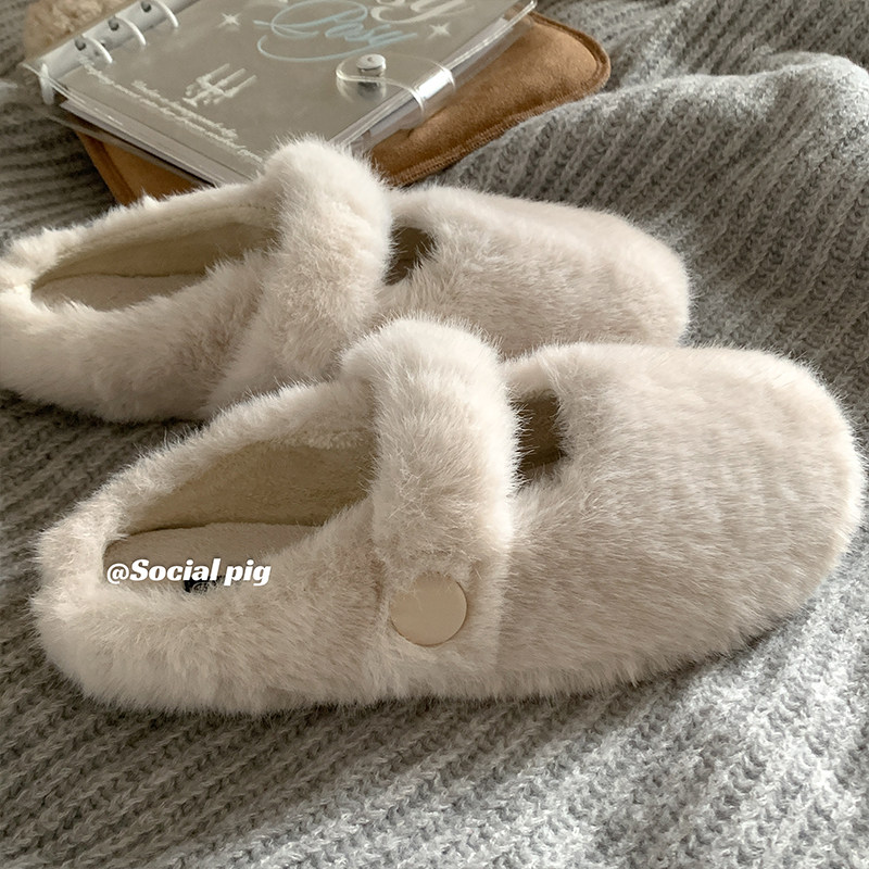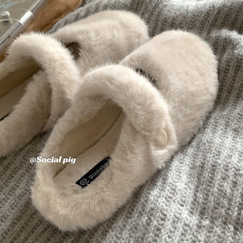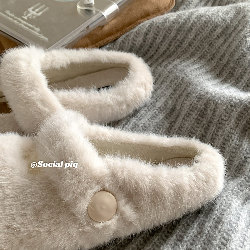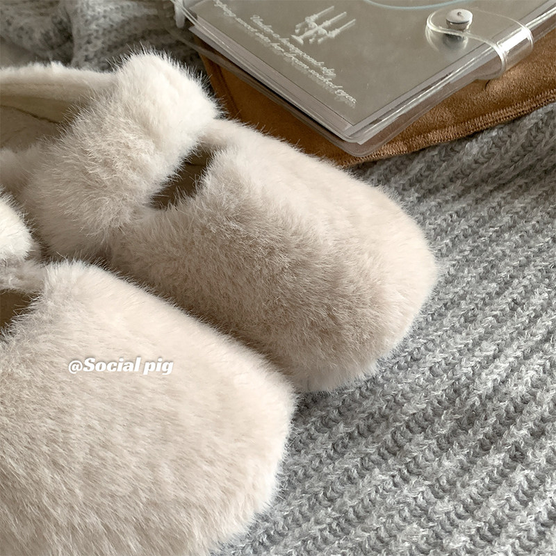 精致感~加绒毛毛鞋女 | 外穿秋冬季懒人鞋豆豆棉鞋玛丽珍单鞋