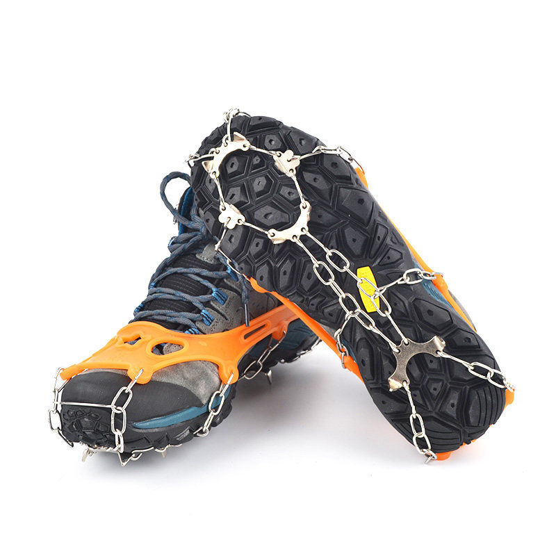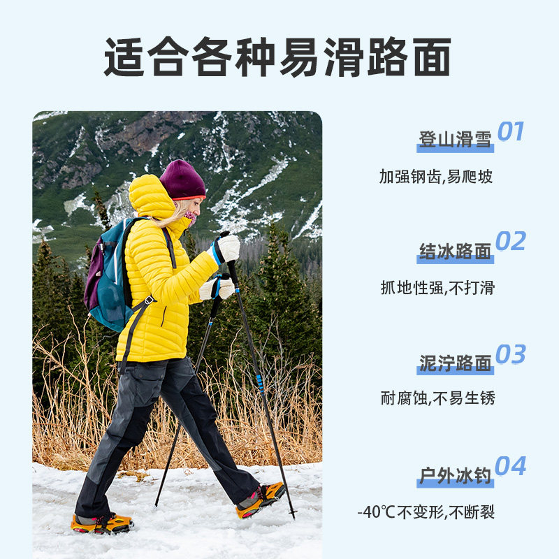 户外冰爪13齿不锈钢焊接防滑鞋套雪爪登山攀岩装备成人冰抓鞋钉链