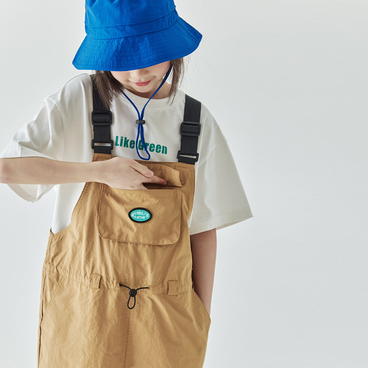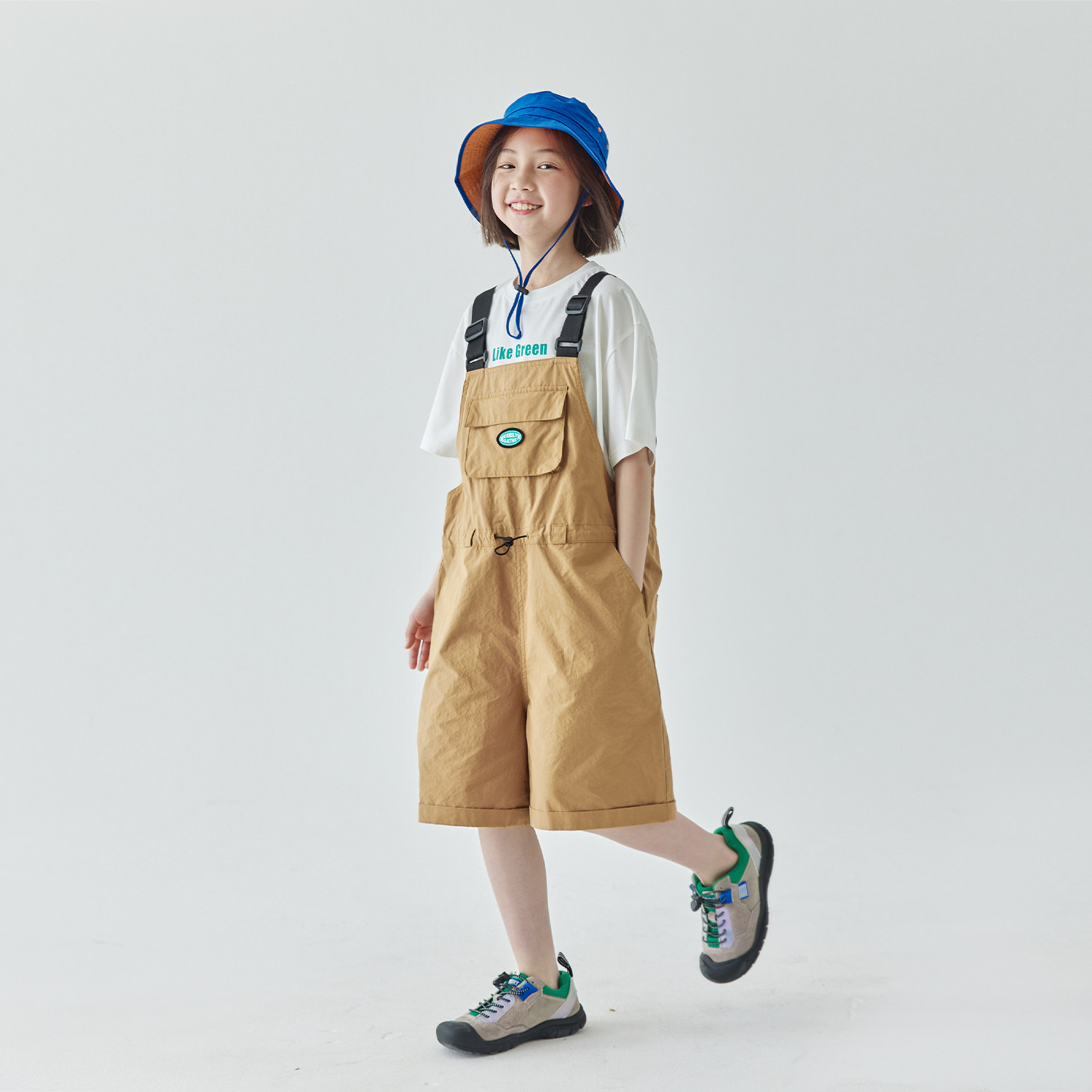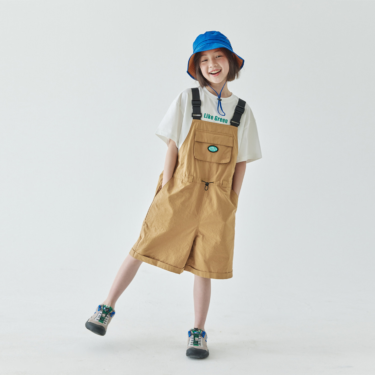 棵初25夏季新品女童可调节休闲工装背带裤百搭亲子款直筒背带短款