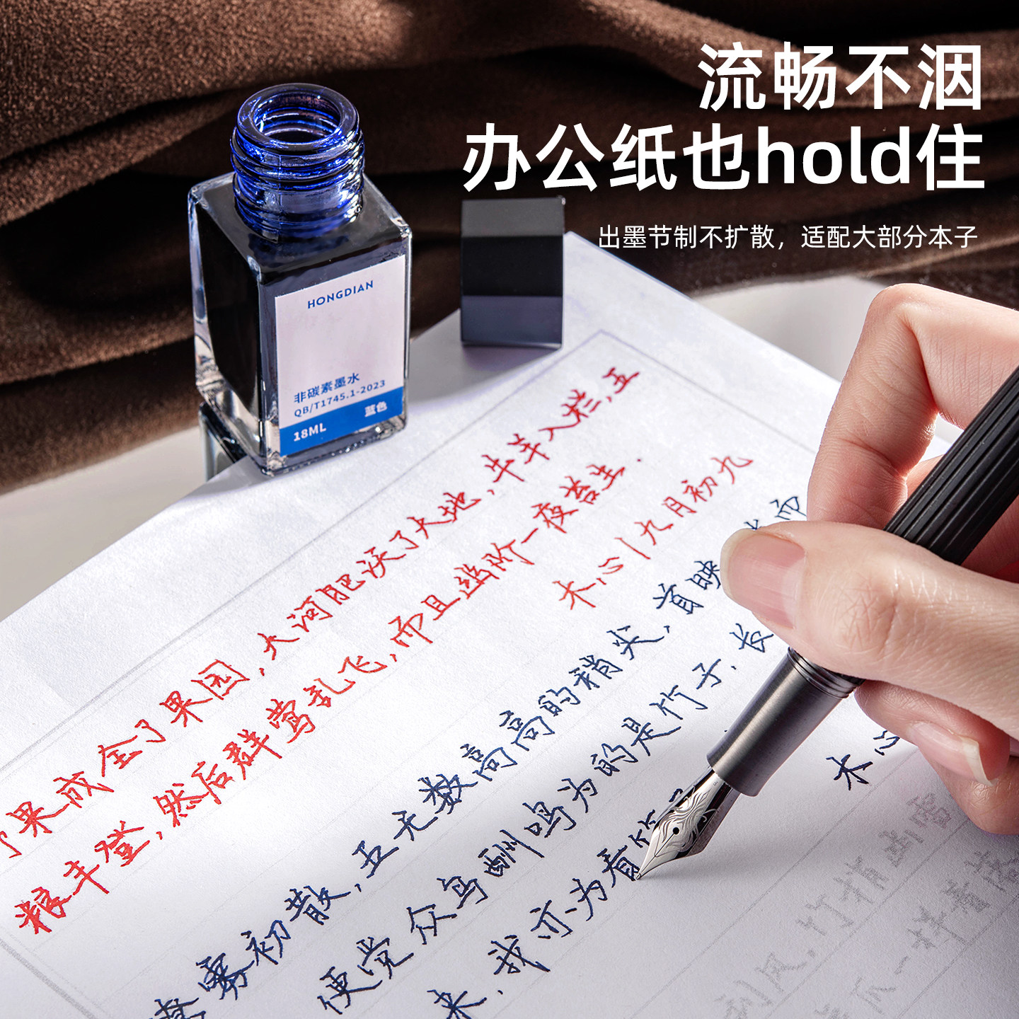 弘典墨水钢笔用彩色非碳素黑色蓝黑水性颜料不堵笔毛笔书法16色18毫升多色彩可调色蘸水古典国风系列染料彩墨