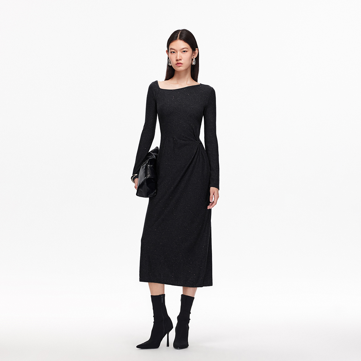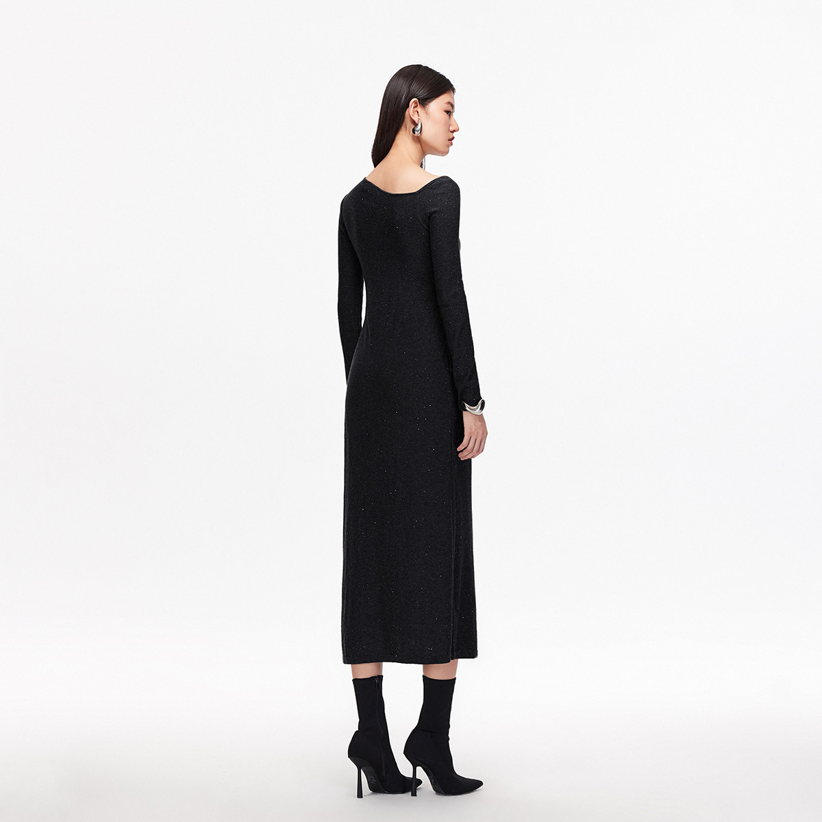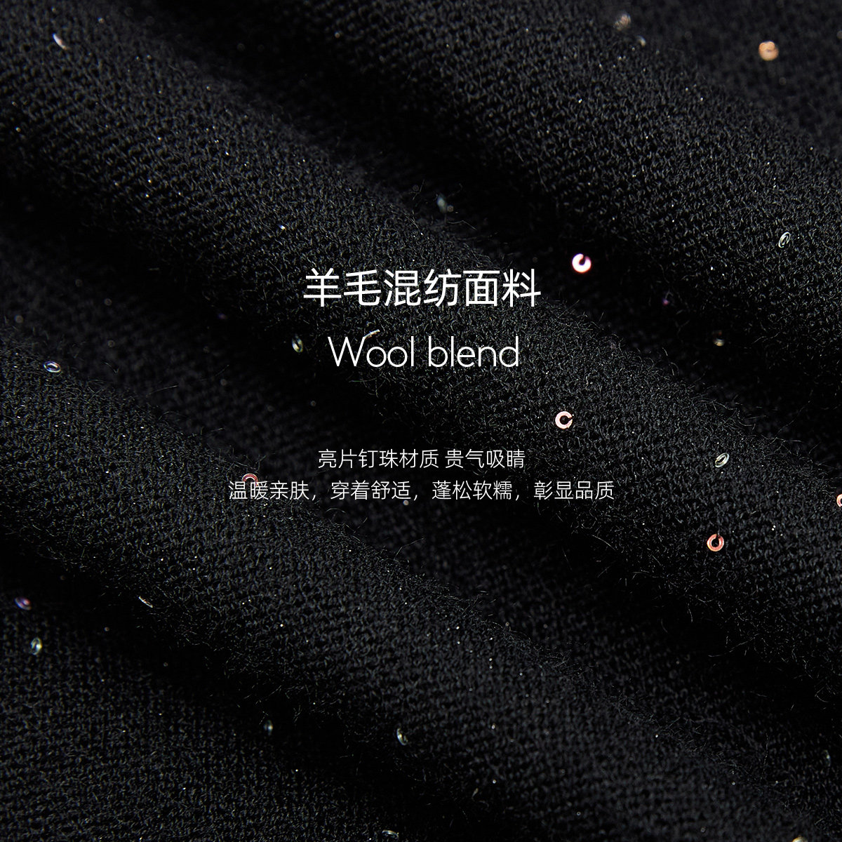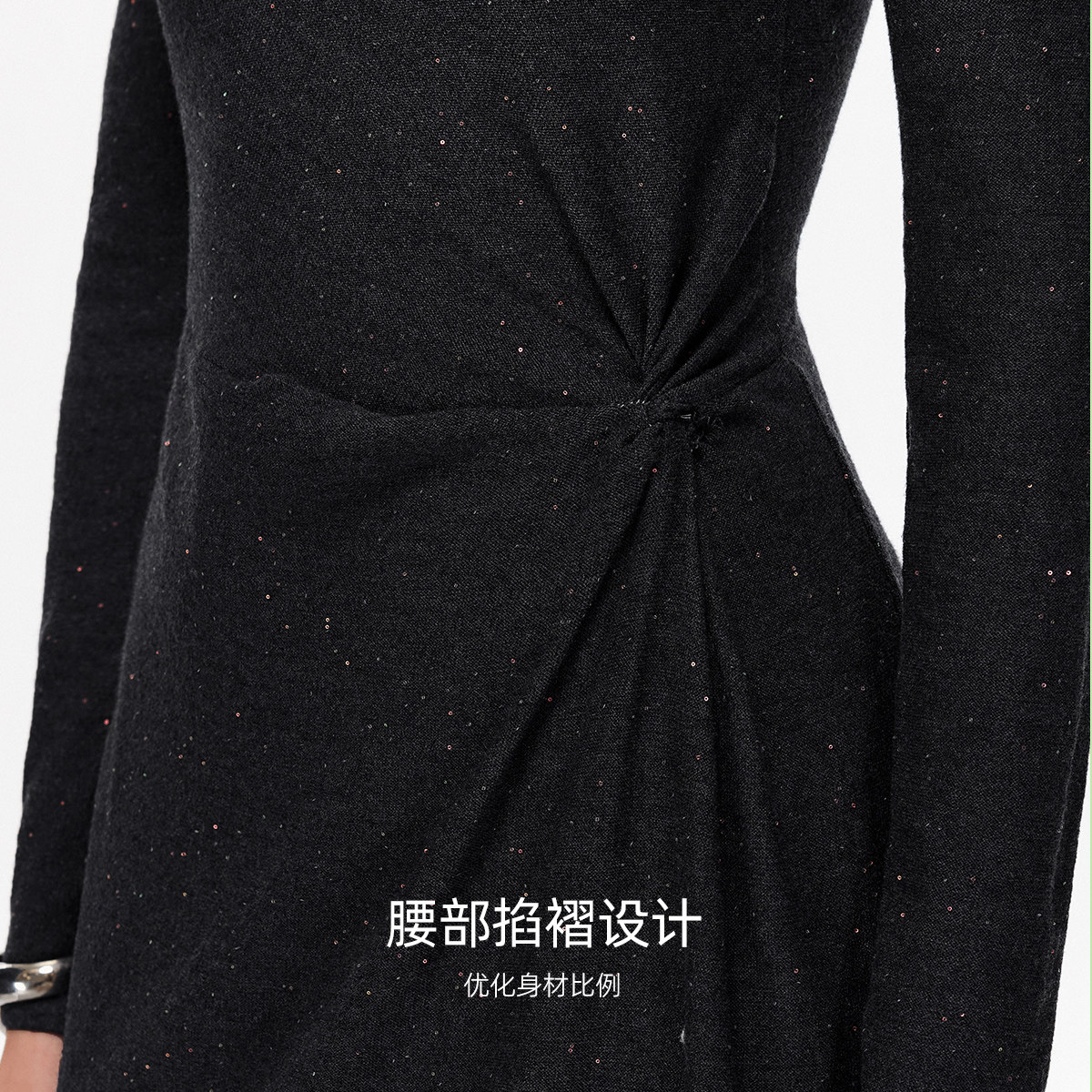 Vero Moda连衣裙2025秋季新款含绵羊毛亮片钉珠不规则领口针织裙