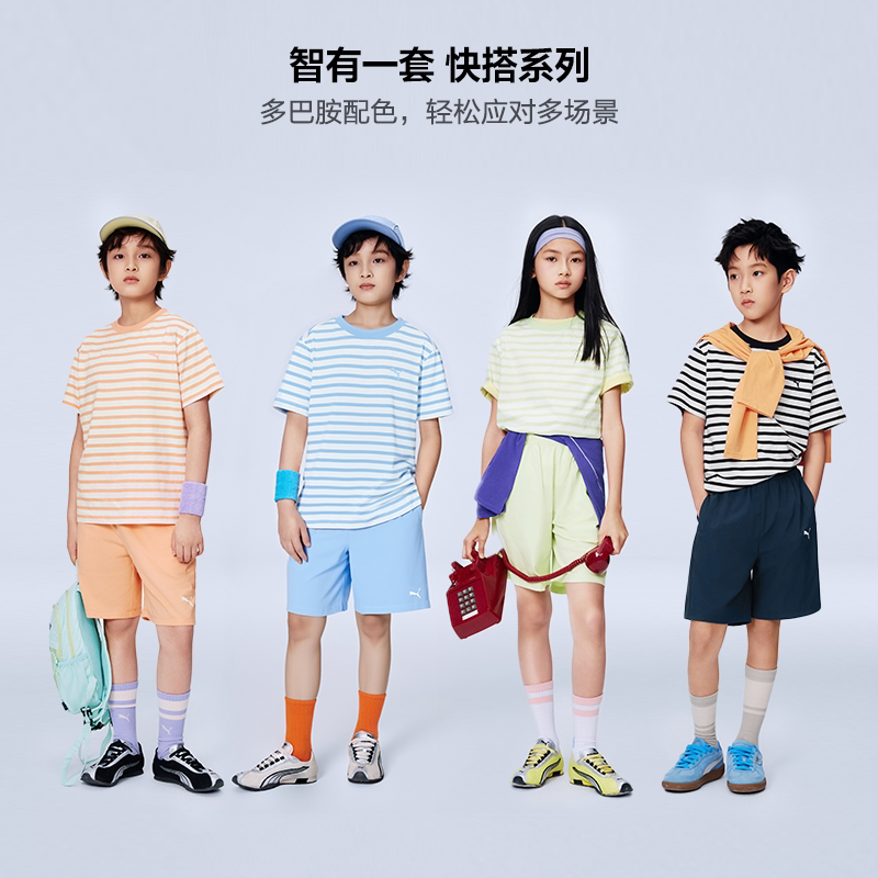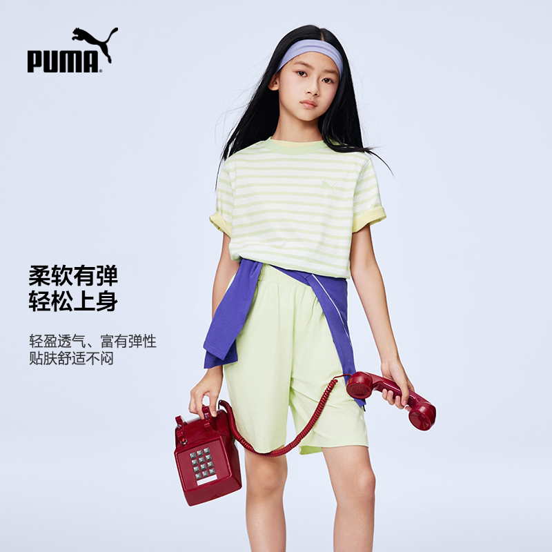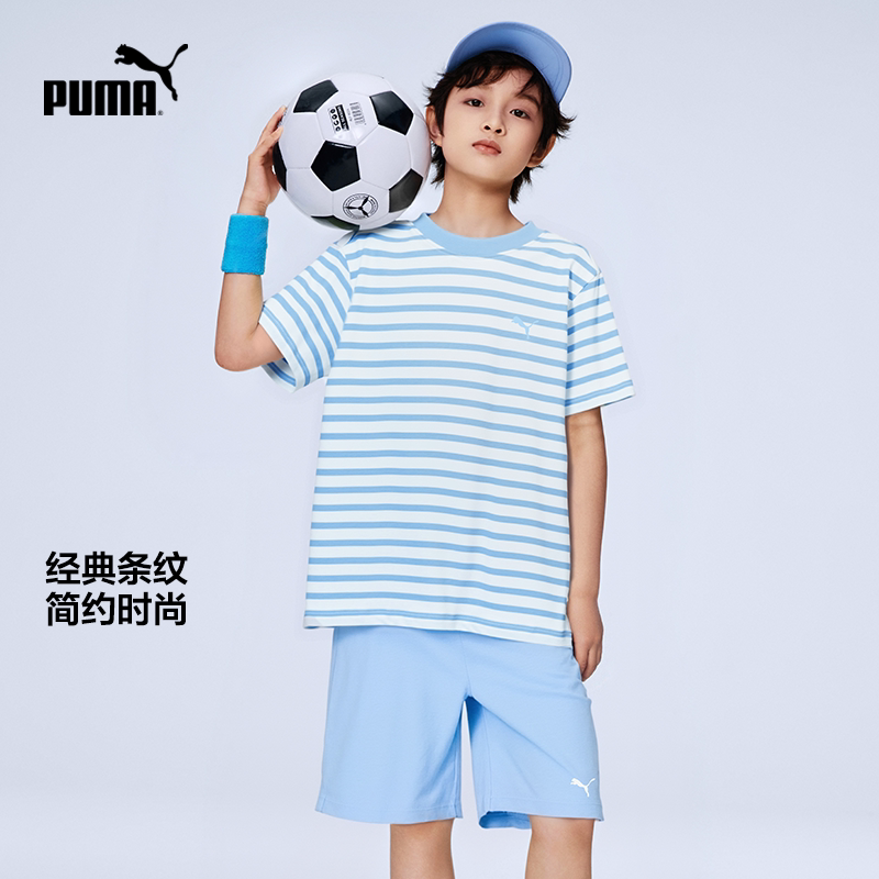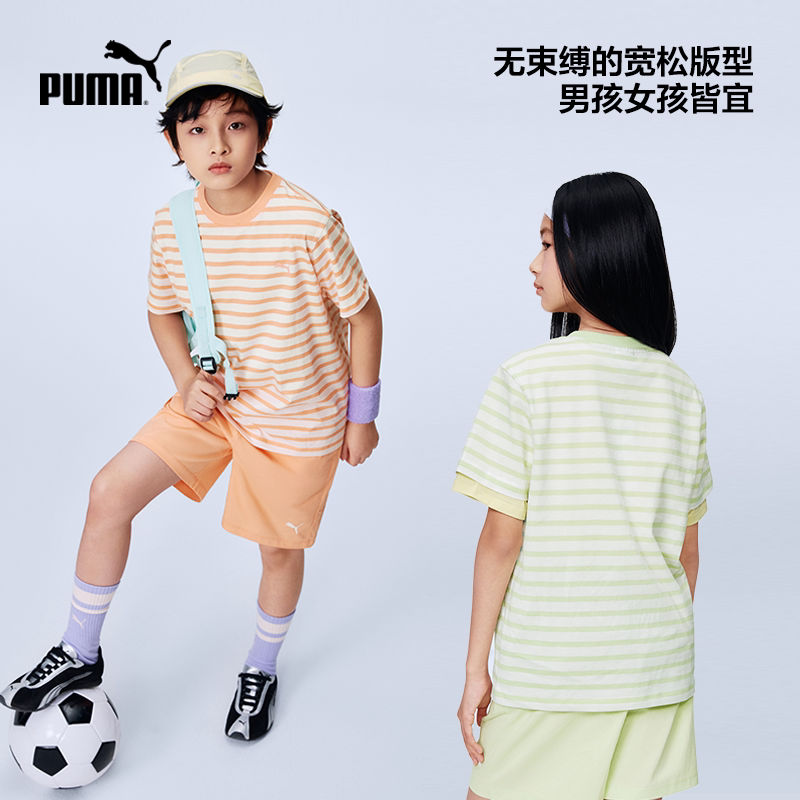 PUMA彪马童装26春夏新款儿童条纹短袖套装款式时尚运动短裤中裤