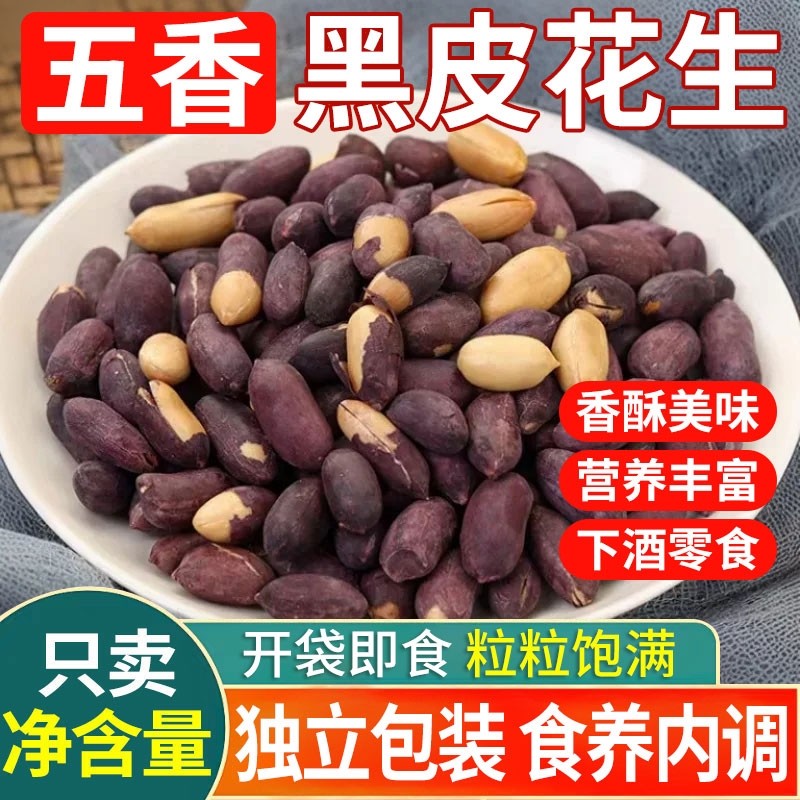 五香黑花生山东特产黑皮花生米下酒菜酥脆小吃炒货零食即食花生仁
