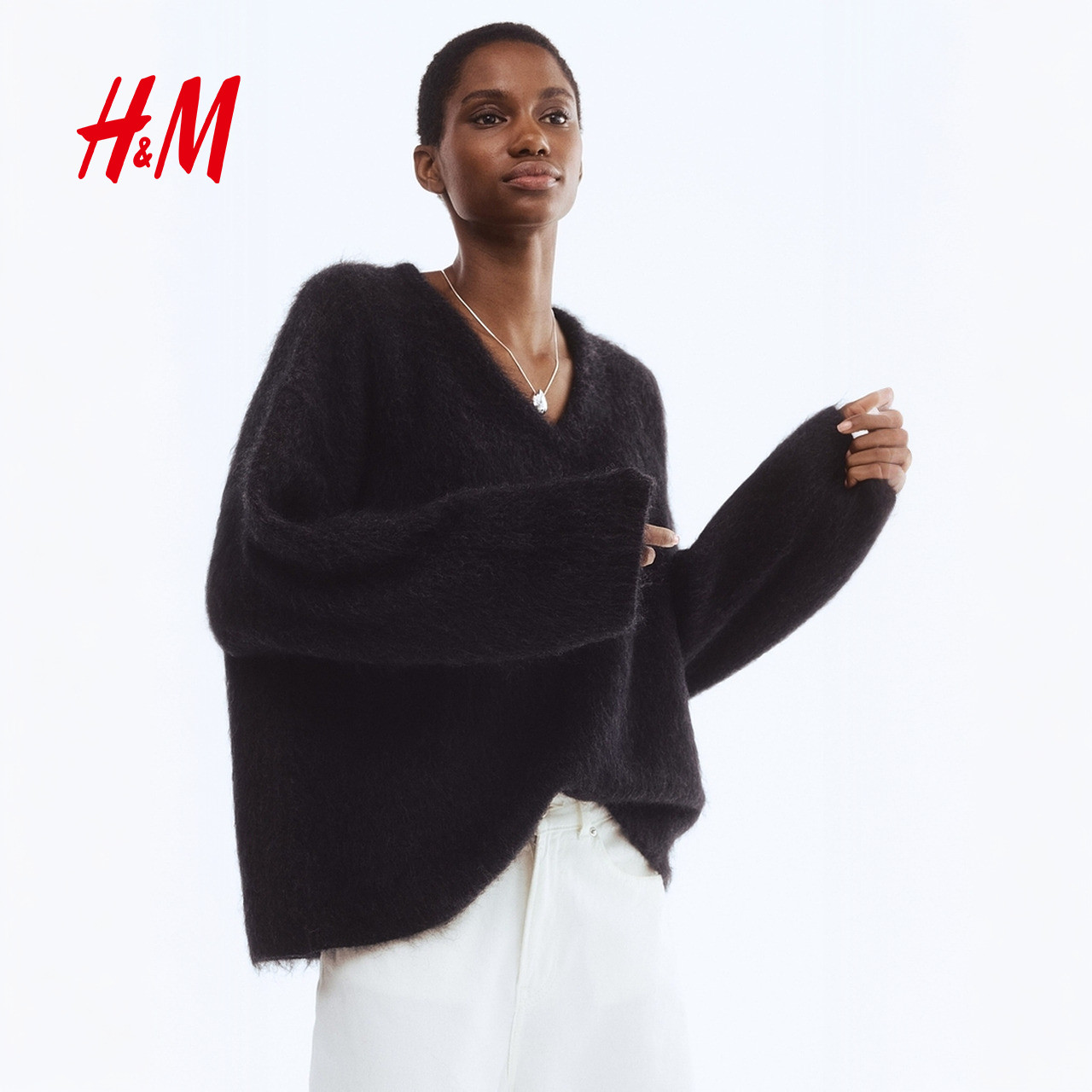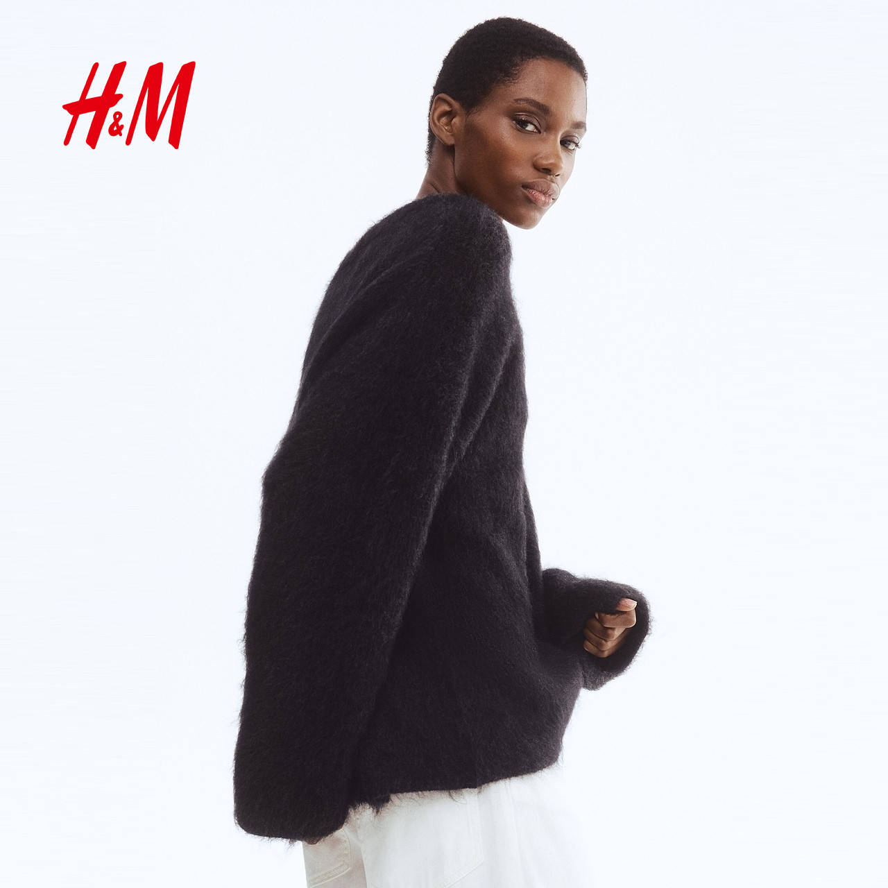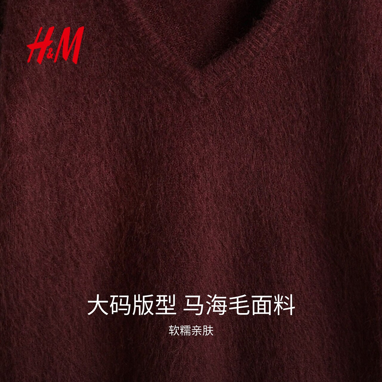 HM女装毛针织衫春季大廓形马海毛羊毛混纺红色毛衣套衫1248344