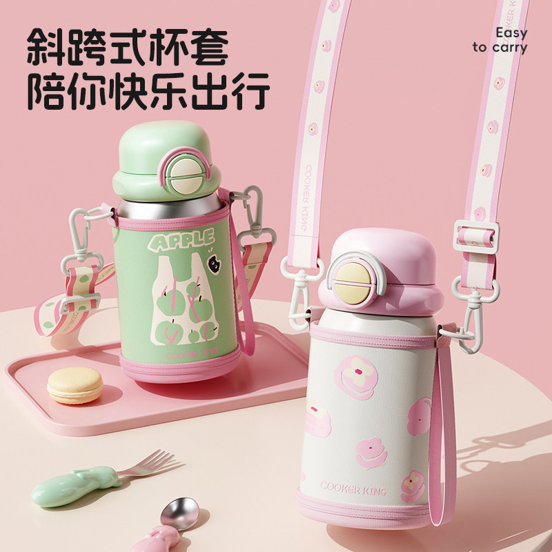炊大皇保温杯儿童吸管杯可拎可背背带款卡通高颜值保温杯水杯子