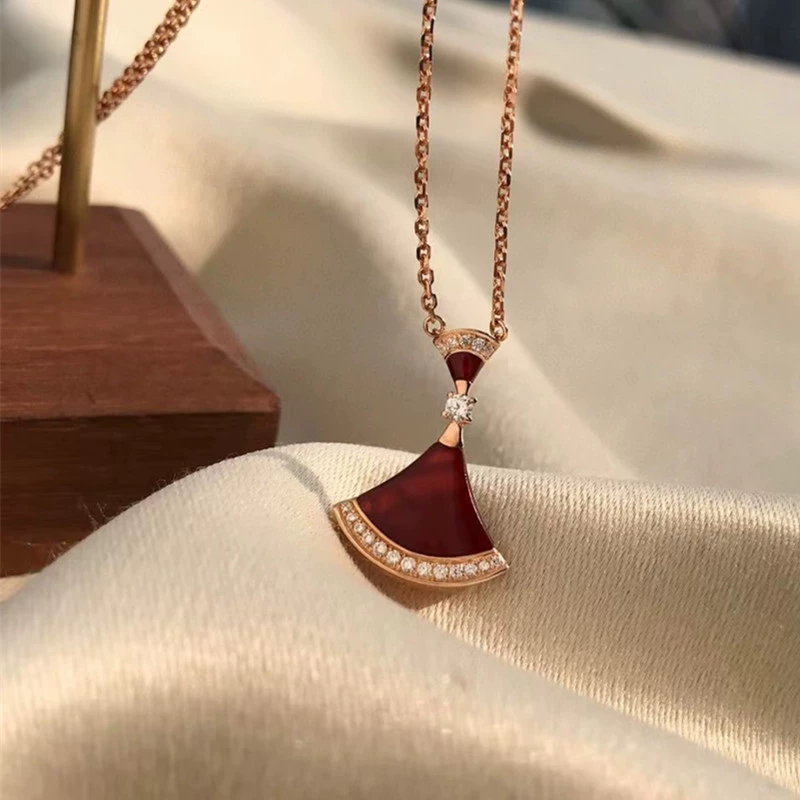 小裙子项链精致镀厚18k玫瑰金轻奢锁骨链白贝母扇形吊坠送女友