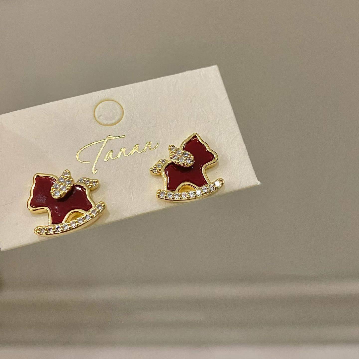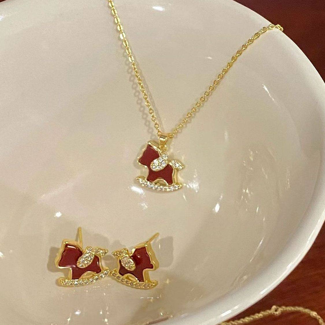2026秋冬新款安可拉红小马吊坠毛衣链时尚气质本命年马年项链耳环