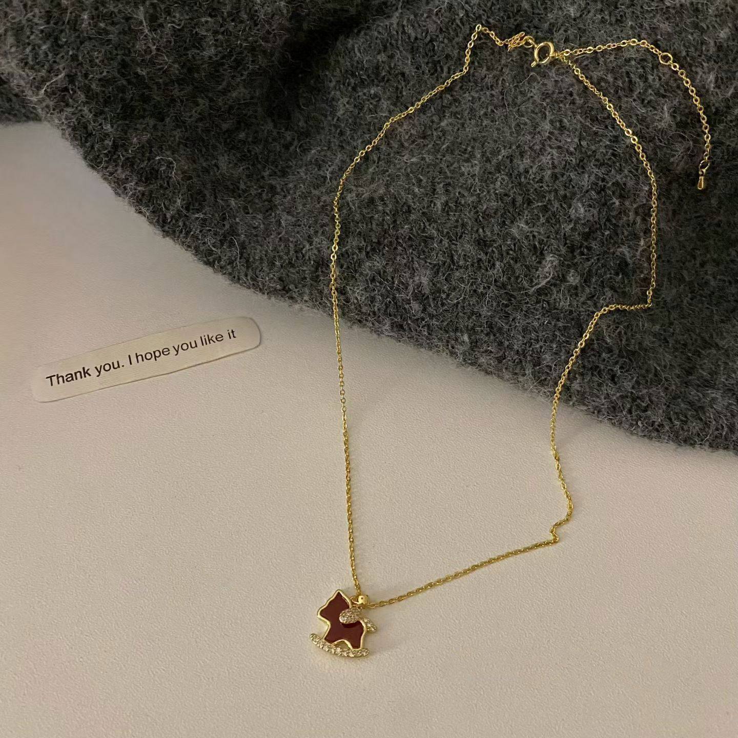 AGATHA/瑷嘉莎爱心小狗项链爆款贝母玛瑙可拆卸设计新年礼物